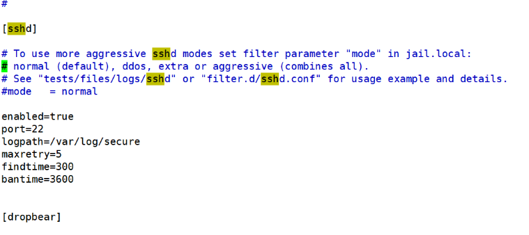 #添加配置 vim /etc/fail2ban/jail.conf