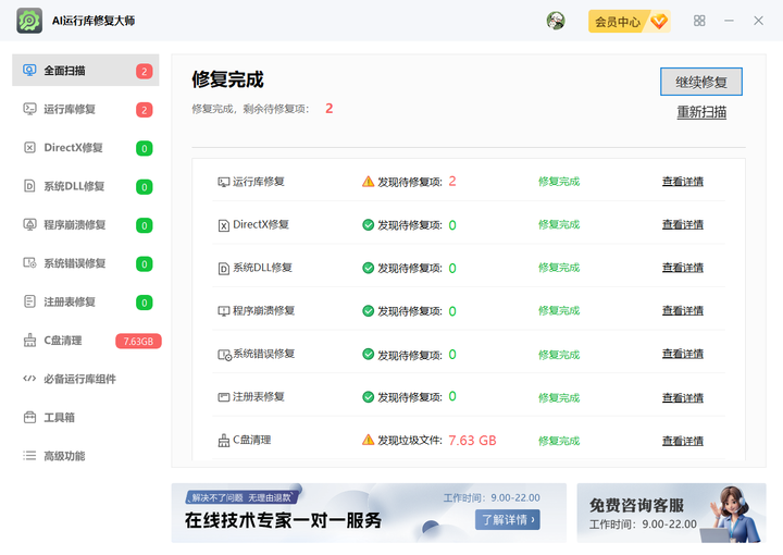 AI运行库修复大师(官方正版)