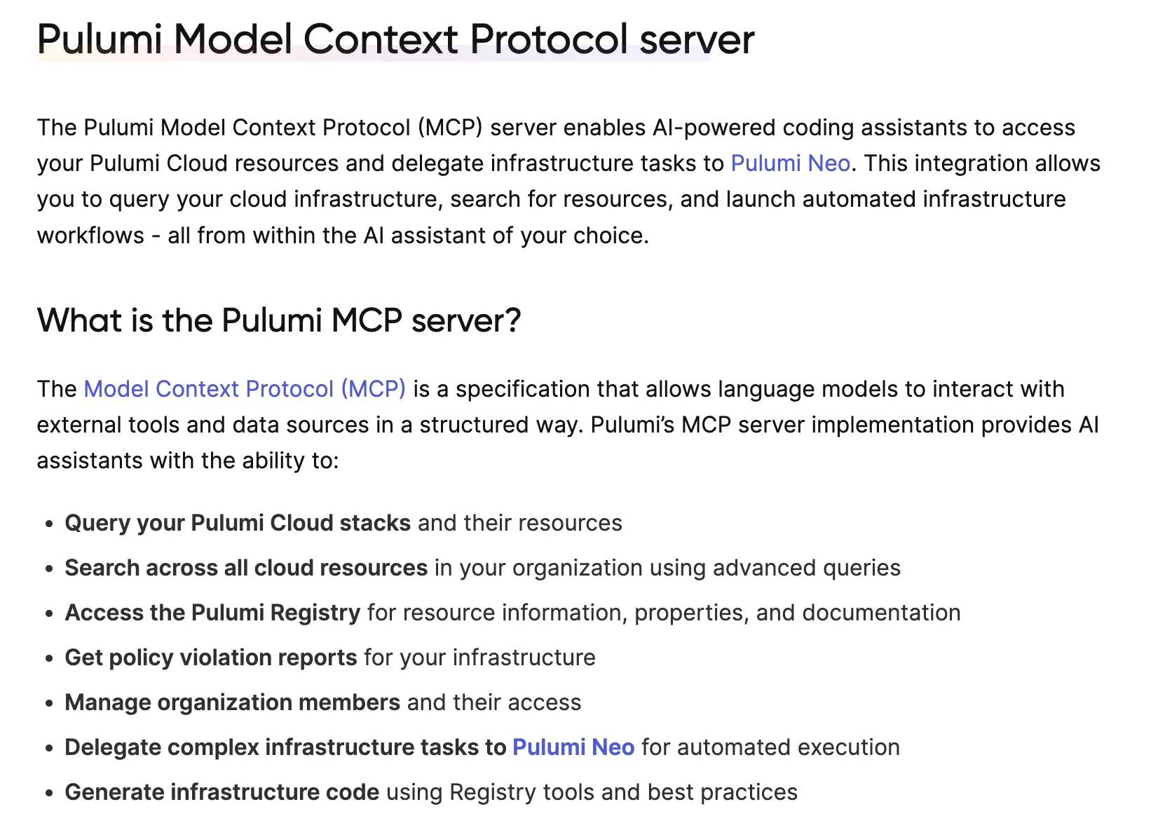 - 官方文档/项目地址:https://www.pulumi.com/docs/iac/guides/ai-integration/mcp-server/