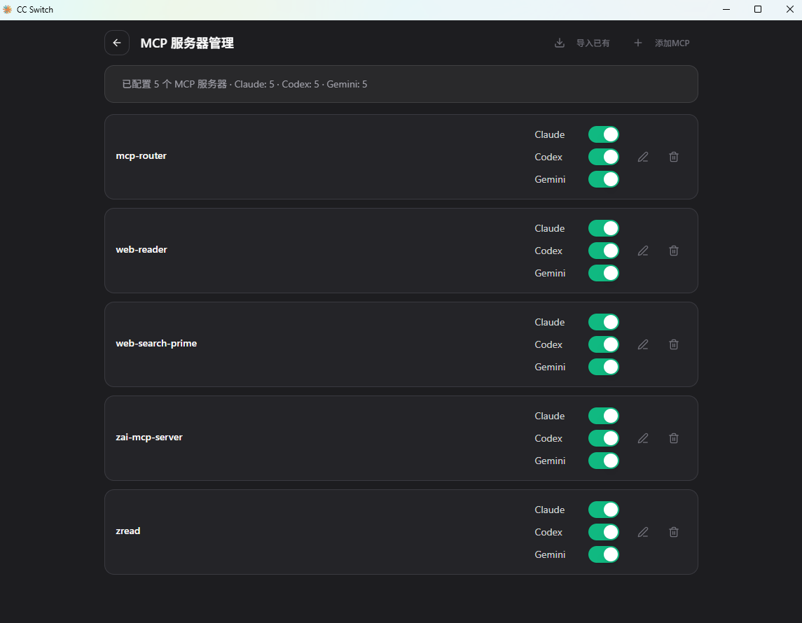 除了 cc switch,还有一些其他的 MCP 管理工具: