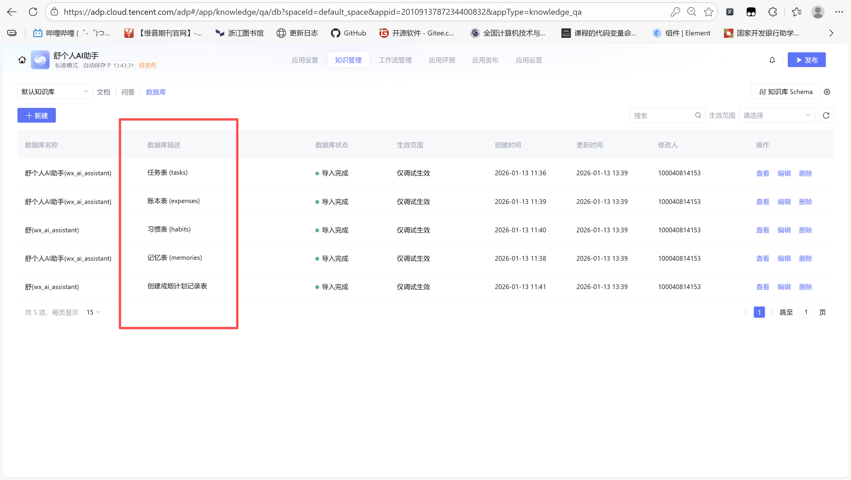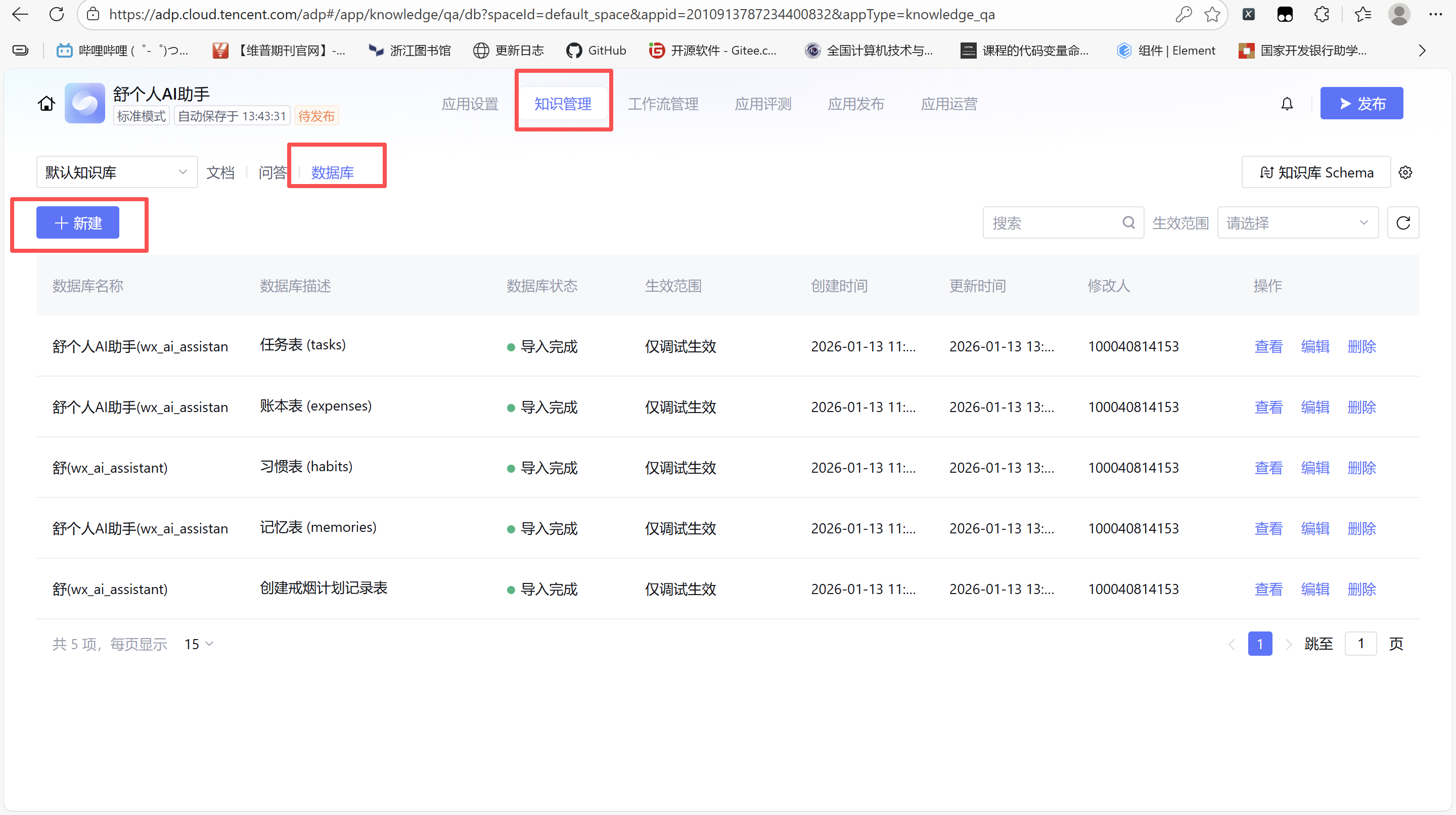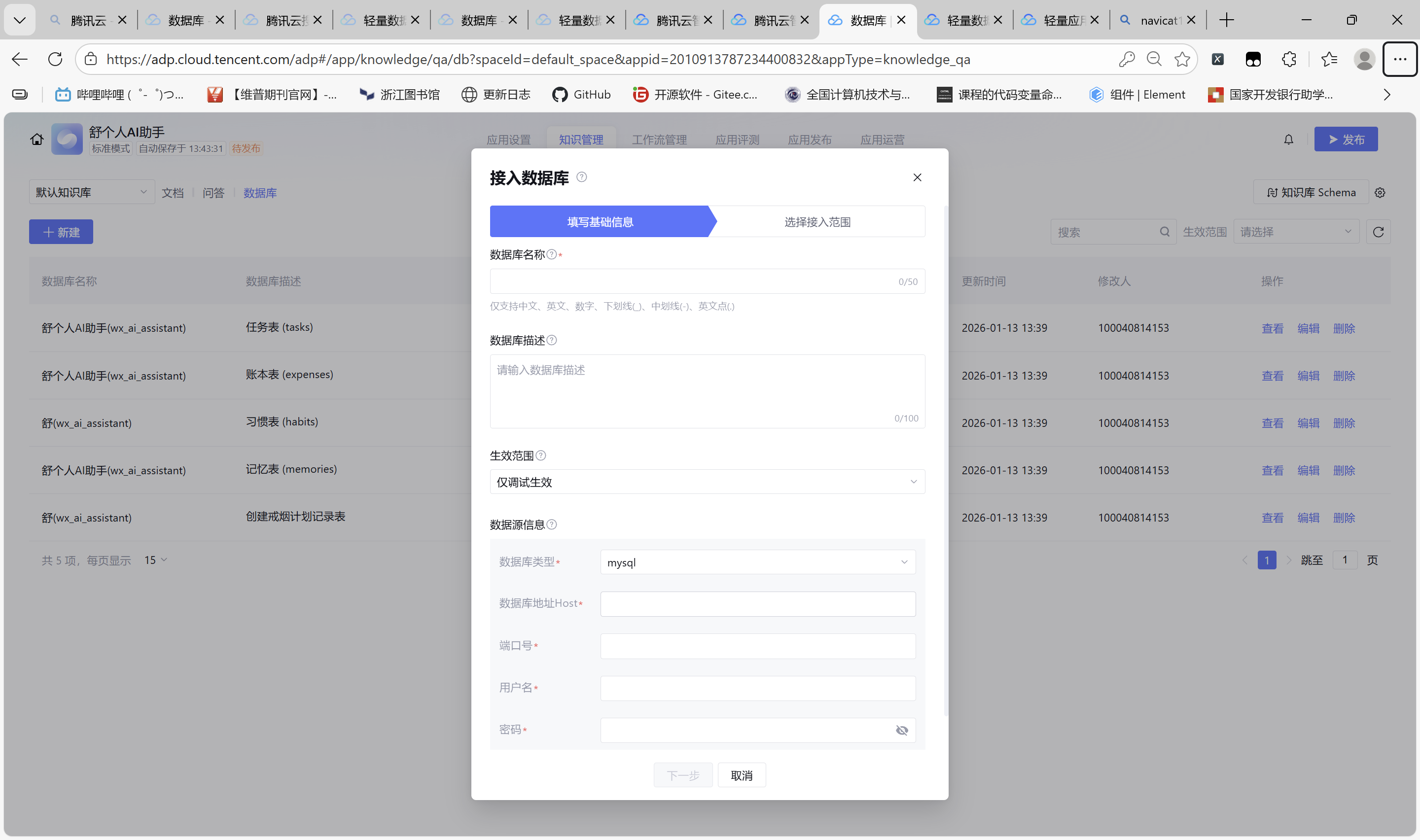把数据库的任务表添加到 腾讯云智能体开发平台