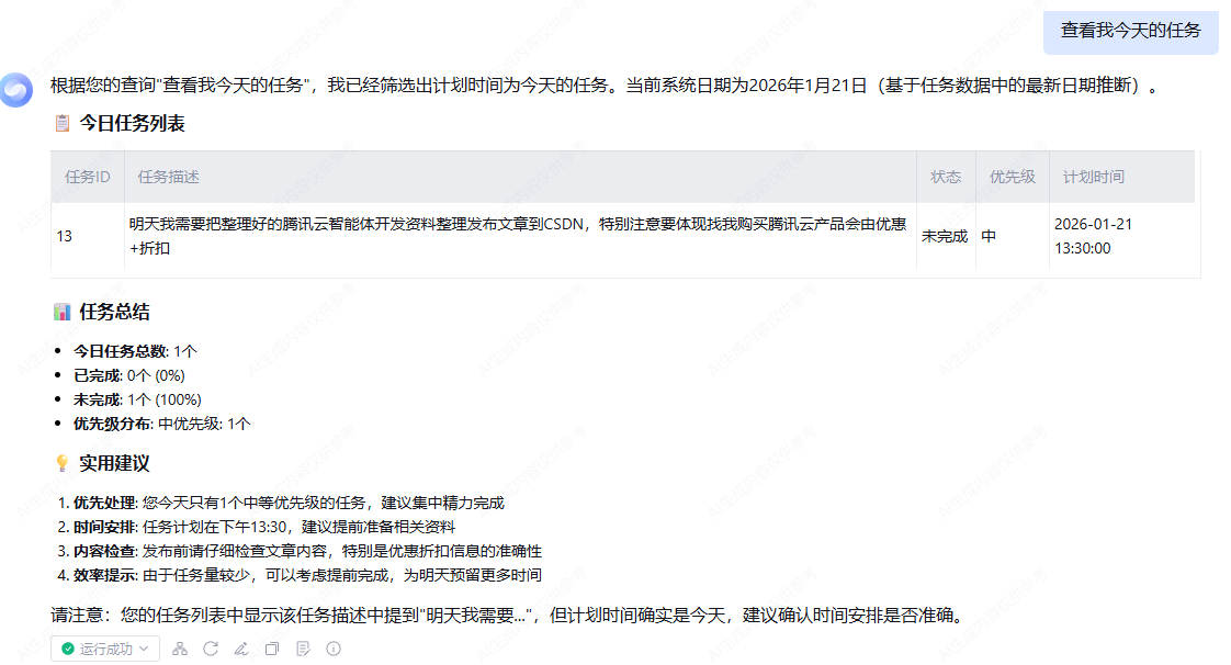 ##意图示例:placeholder= - 今天的任务有哪些 → 查看今日任务列表