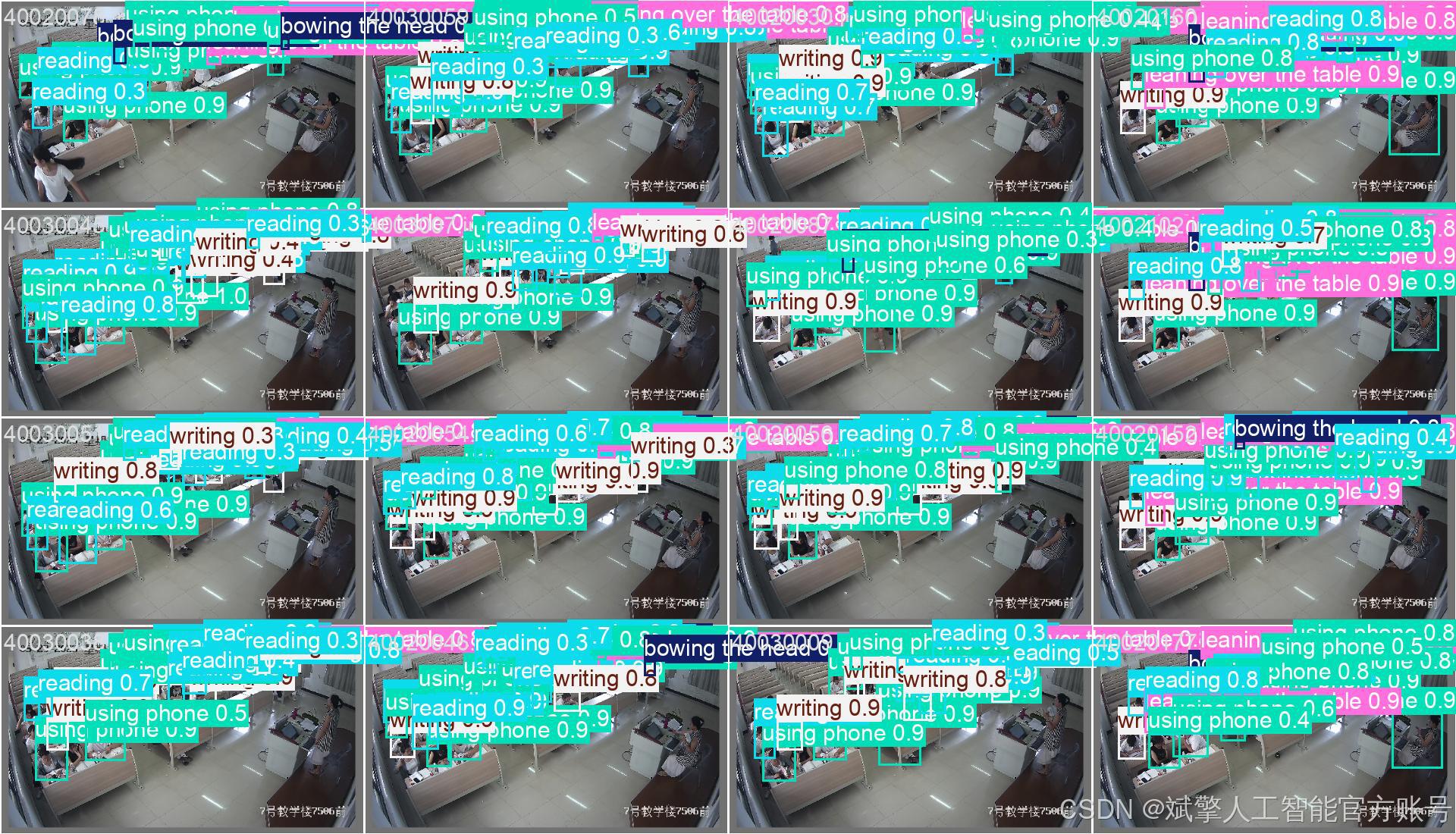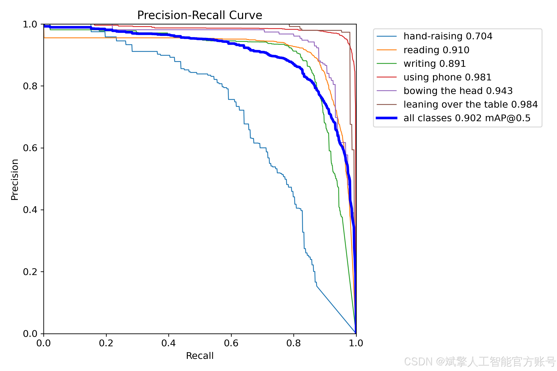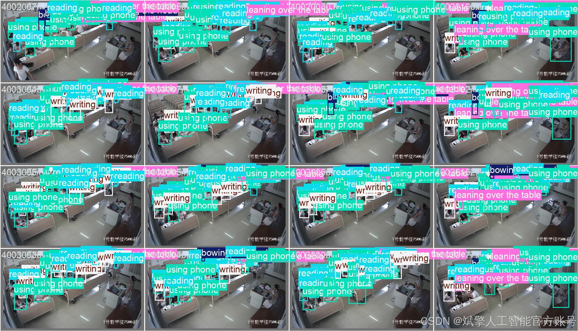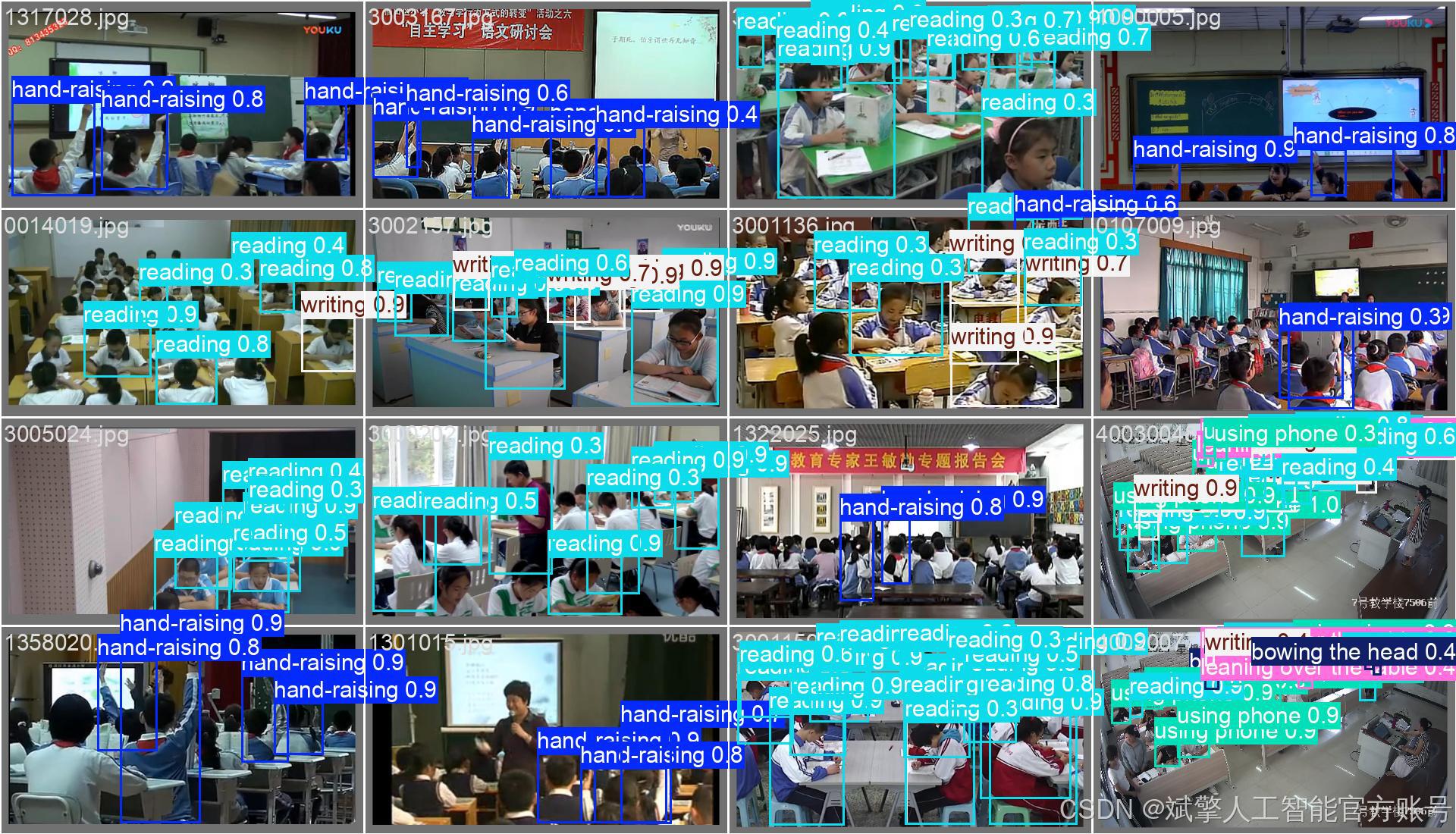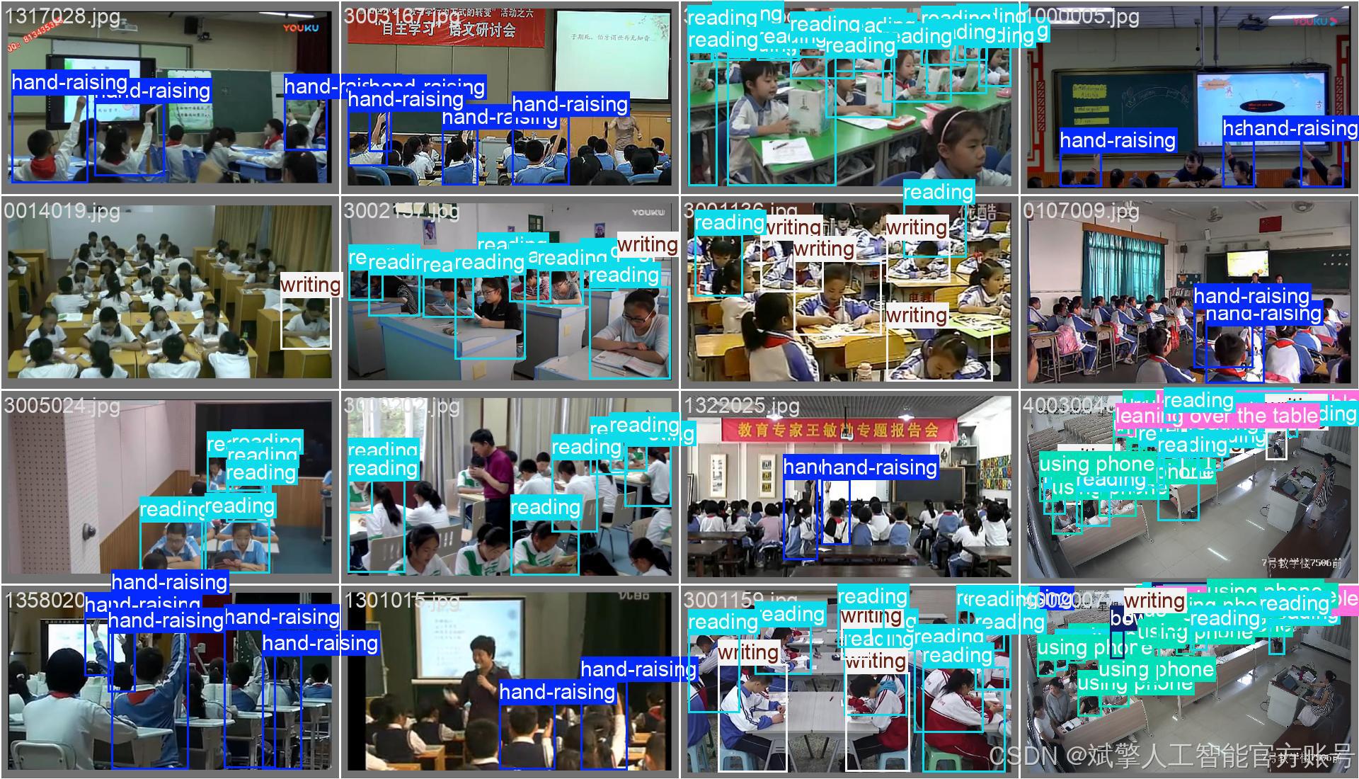 本项目基于YOLOv11深度学习算法开发了一套学生课堂行为检测系统,旨在实时识别并分析学生在课堂中的多种行为表现。系统可检测6类典型课堂行为:举手(hand-raising)、阅读(reading)、书写(writing)、使用手机(using phone)、低头(bowing the head)和趴桌(leaning over the table)。采用精心标注的YOLO格式数据集,包含训练集1