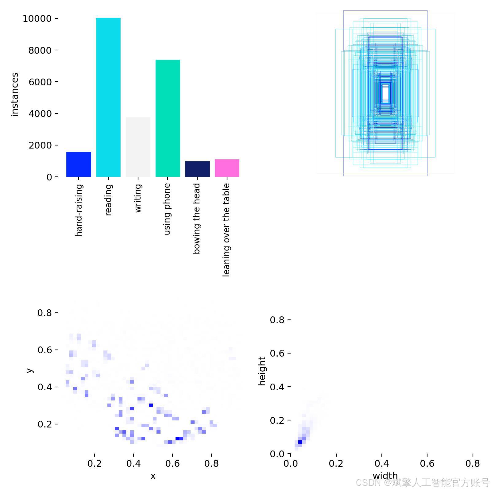 本项目采用 YOLO 格式标注 的学生课堂行为检测数据集,包含 6 类常见课堂行为,具体类别及数据分布如下: