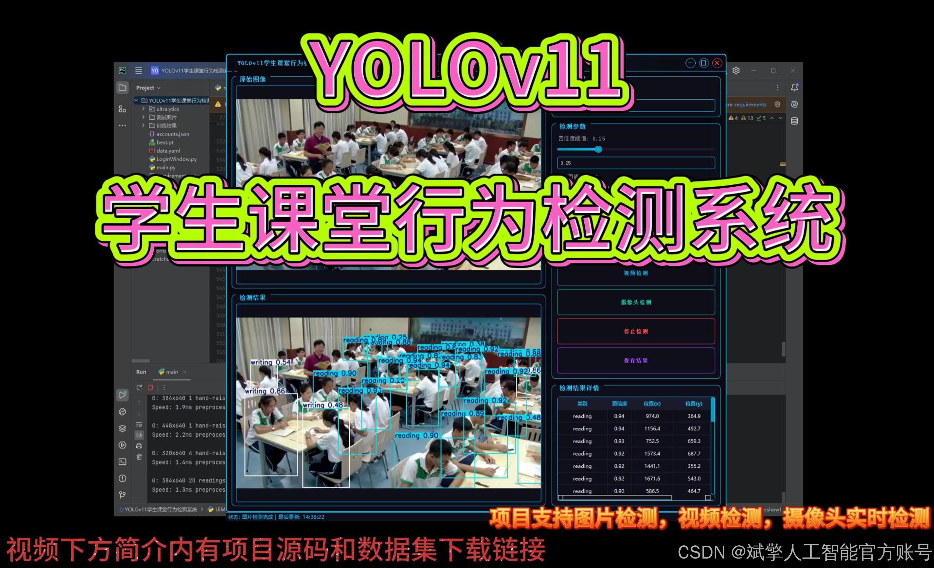 基于深度学习YOLOv11的学生课堂行为检测系统(YOLOv11+YOLO数据集+UI界面+登录注册界面+Python项目源码+模型)_哔哩哔哩_bilibili