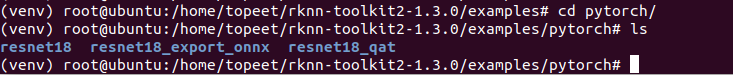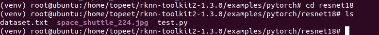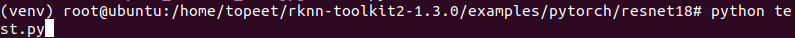 4 进入到examples/文件夹,输入以下命令,执行模型转换和推理模型的test.py脚本。