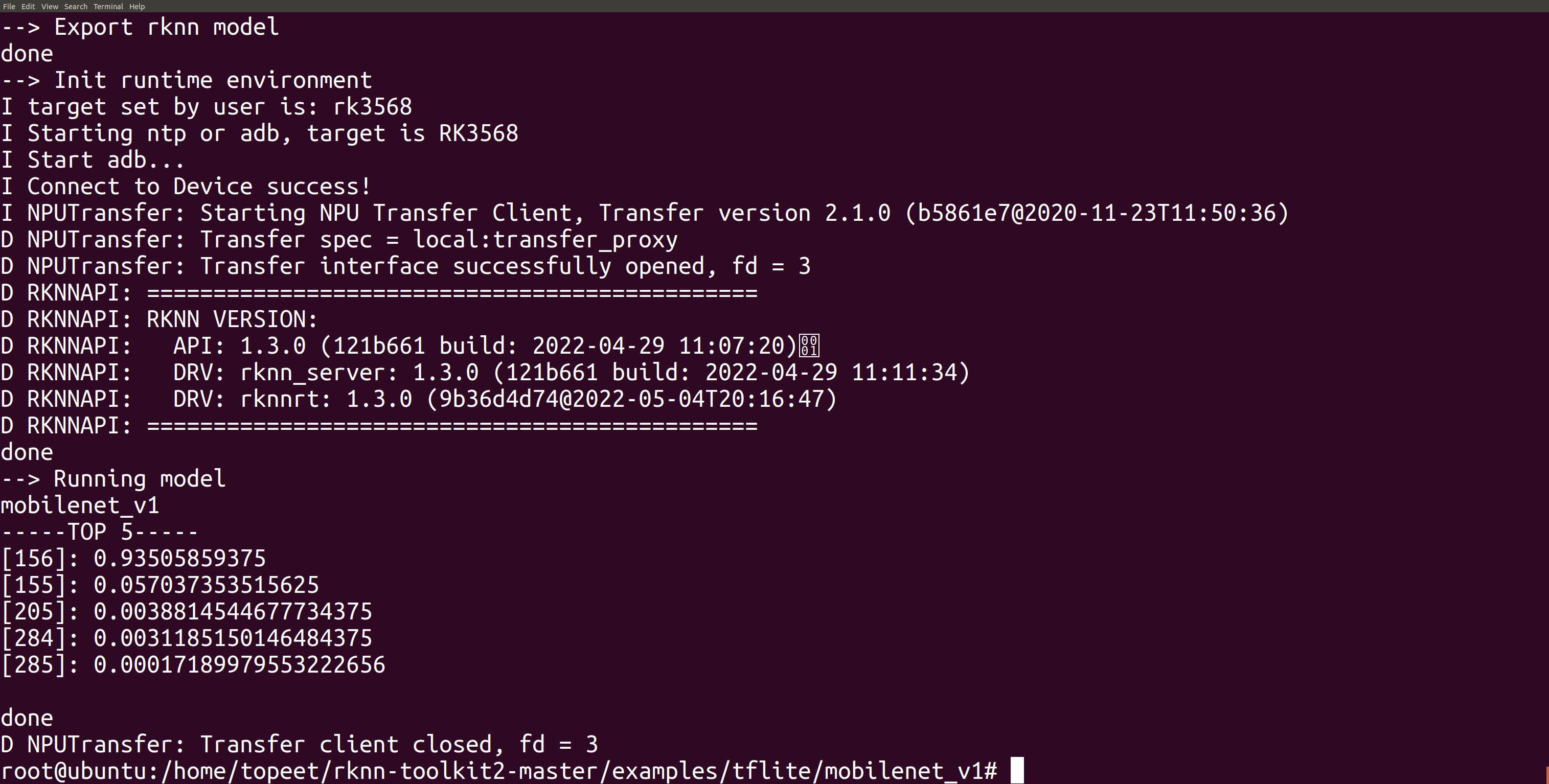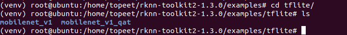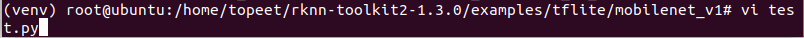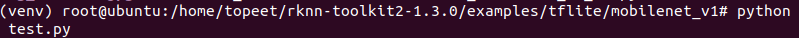 5 进入到examples/tflite/mobilenet_v1文件夹,输入以下命令,执行模型转换和推理模型的test.py脚本。