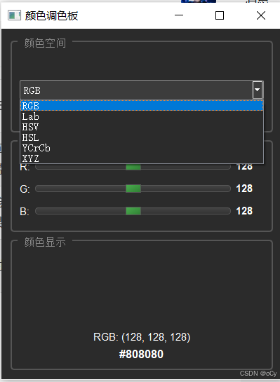 【QT opencv】基础应用之颜色空间(附有调色板源码)