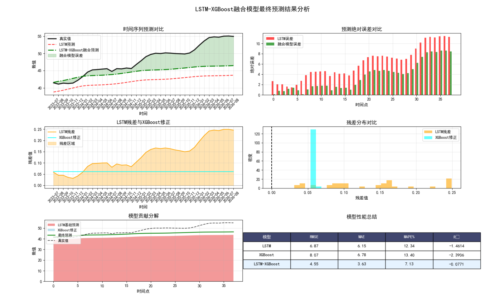 - 优势互补:LSTM的时序建模能力与XGBoost的非线性拟合能力相结合
