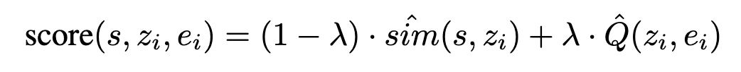 为兼顾相关性和有用性,MEMRL采用了**“先相关后价值”的双阶段检索**。阶段A:语义召回(Similarity-Based Recall),智能体根据当前查询的意图表示s,计算其与记忆中所有意图嵌入zi的余弦相似度,选出相似度超过阈值的前 k1条经验构成候选集。这一阶段确保检索内容在语义上相关,减少搜索空间。接着是阶段B:价值感知选择(Value-Aware Selection),从候选集中进一步选取最优的记忆条目用于推理。具体做法是引入一个组合评分函数,综合考虑语义相似度和效用值: