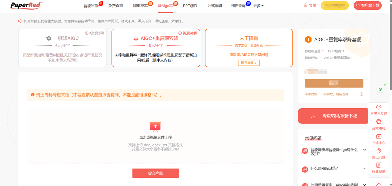 我体验下来的感觉就是,AI润色的加强版。AIGC率高的话,用它降ai,基本就是给润色了一下,效果不大。