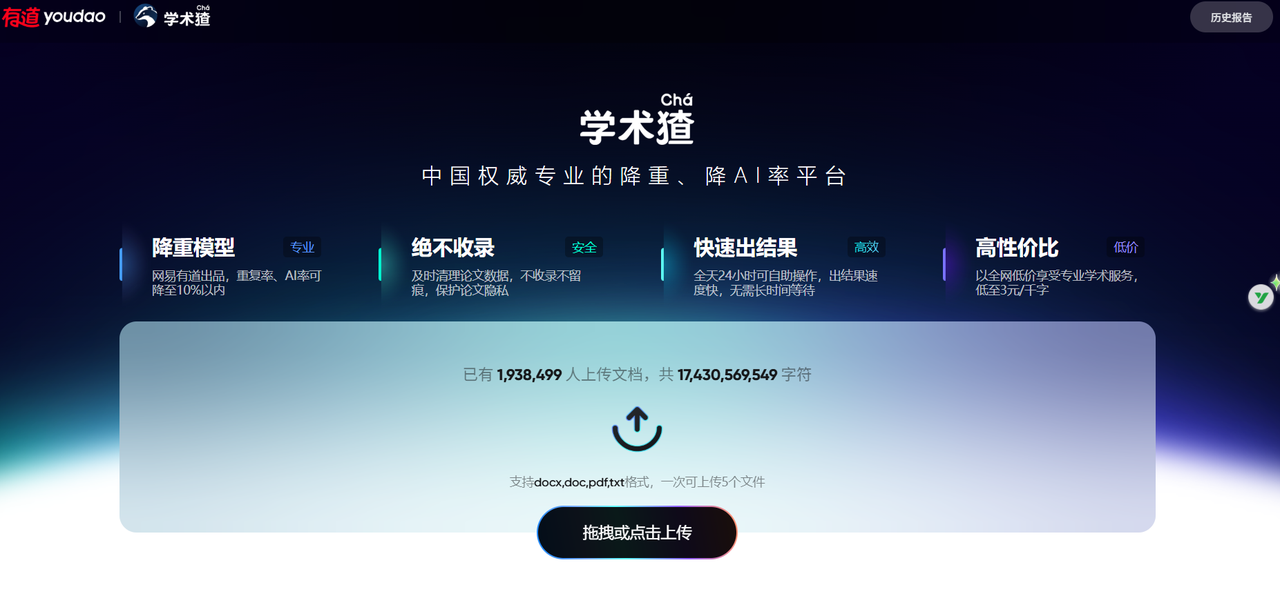 官网链接:https://xueshucha.youdao.com/