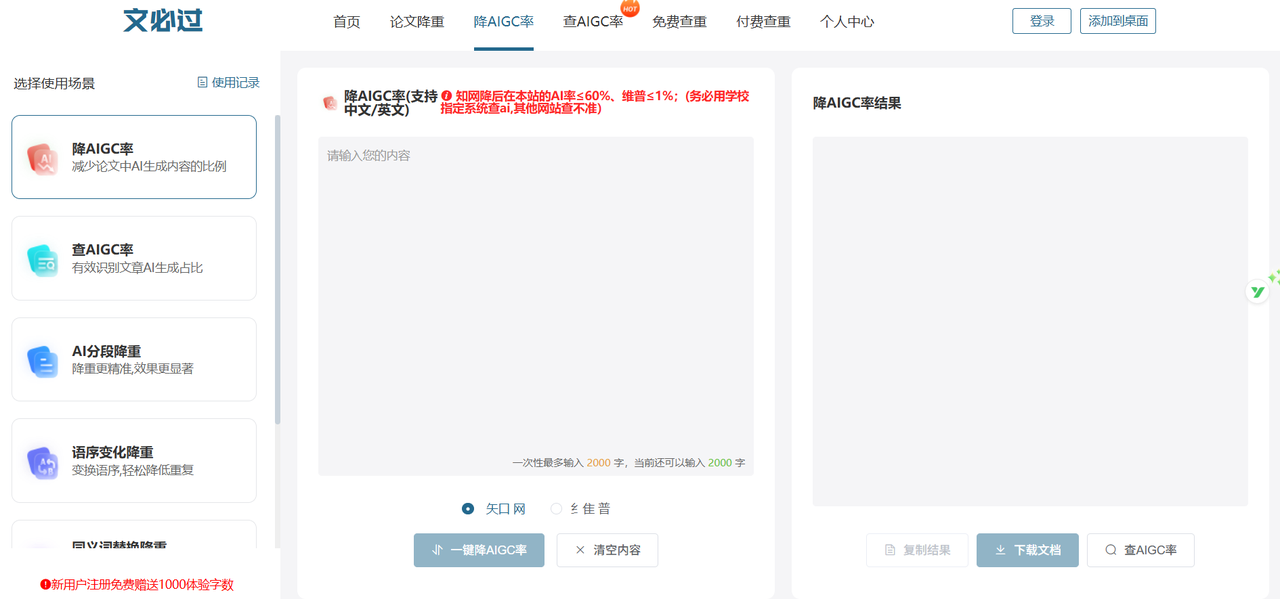 它情况和PaperYY基本一致,作为查重工具,它是专业的,但作为降ai率工具,它只能算及格。如果AIGC率很高的话,你指望它一次搞定,有点悬。