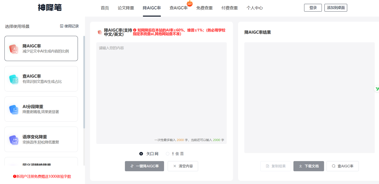 它其实不算是降ai率工具,主要用来AIGC检测。但它也能帮你自查自纠,让你知道哪里AI味重需要你再配合其它降ai工具辅助改写。