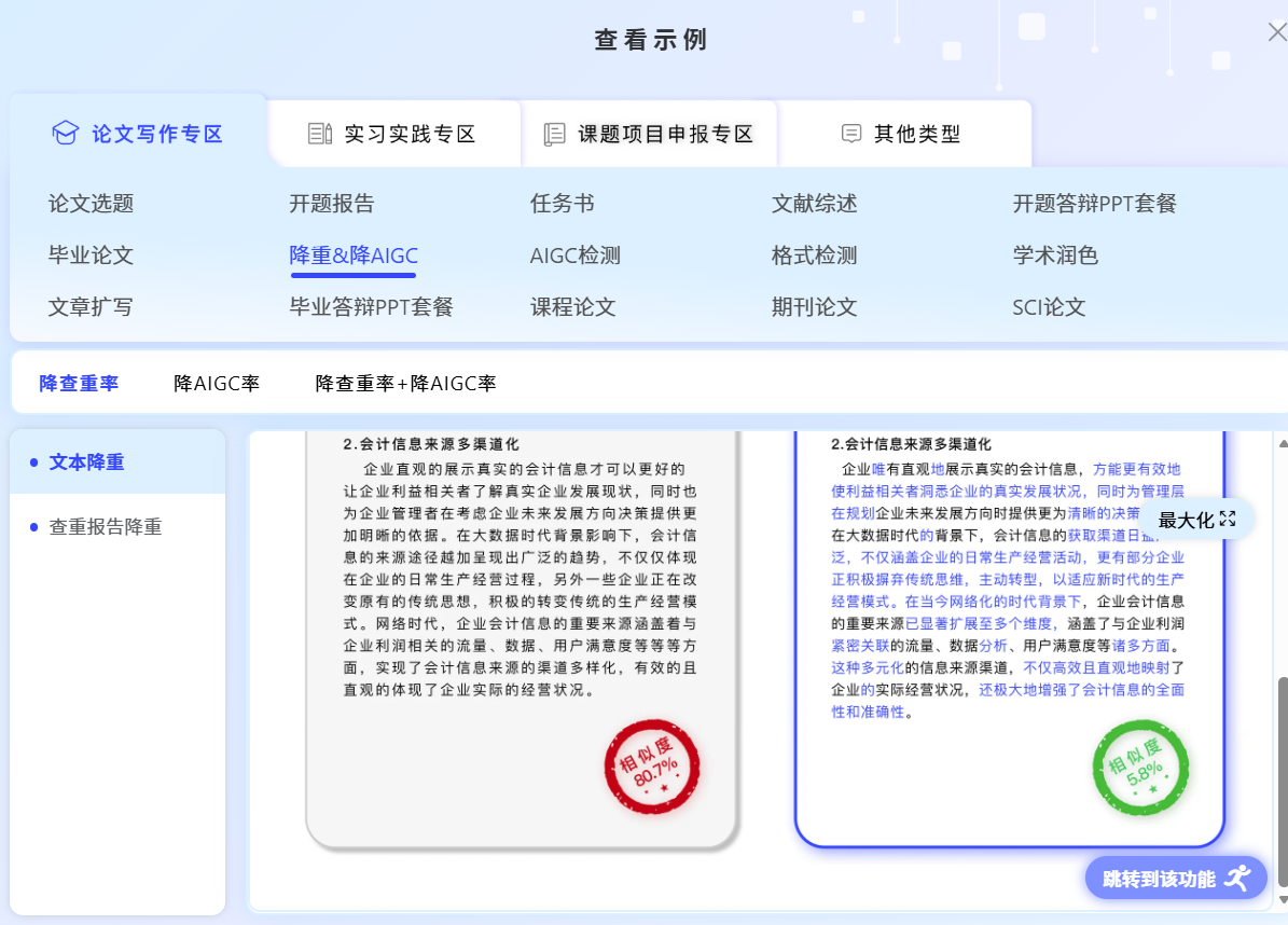 实测结论:面对超高AI率的“危重”论文,这款工具展现出了强大的“抢救”能力。它不仅能将数值降至安全范围,更能对文本进行“逻辑重塑”,赋予其新的活力。这为那些因各种原因提交了高度AI依赖稿件的同学,提供了一个宝贵的补救窗口。