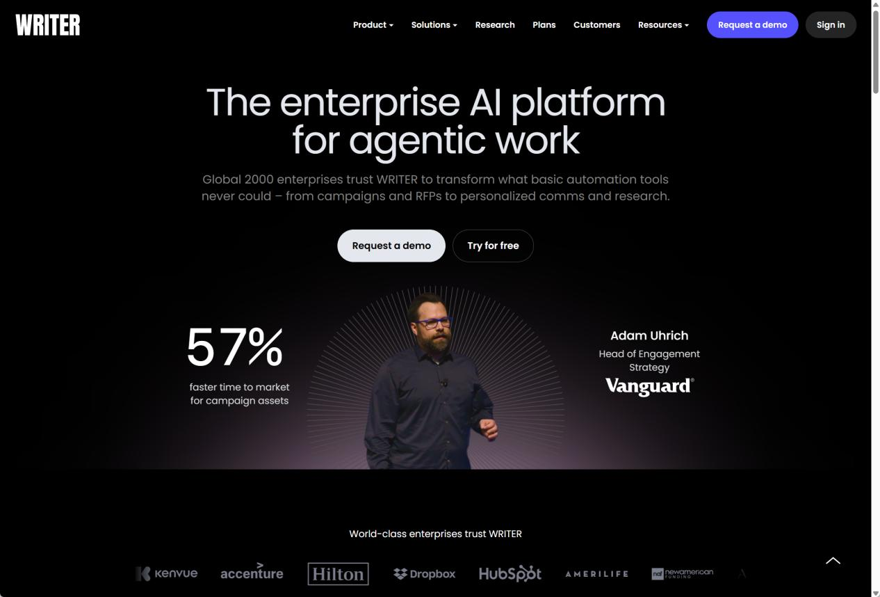独特价值与投资动因: Writer的独特价值在于满足了企业对生成式AI的“三重要求”:即定制化、可控性和集成性。它不像OpenAI一样提供公共大模型服务,而是给予客户很大自主权去训练、部署和管理模型,使AI真正成为企业内部资产的一部分。这解决了大公司“不想让机密数据喂给外部AI”的痛点,抓住了市场空白。投资者投资Writer,看中的是未来几乎所有大中型企业都可能需要一个“自己的GPT”,这将是一个数百亿美元的新兴市场,而Writer已占得先机。Habib曾表示,许多企业目前只是尝试造出自己的“CompanyX-GPT”应用,但发现真正难点在数据准备、工作流融入等“90%的工程量”。Writer通过产品化手段将这些繁琐过程标准化,大大降低了企业用AI的门槛。这种全栈闭环能力不是单点工具可以比拟的,也是Writer得到巨额融资的主要原因之一。简而言之,Writer提供的是“为企业量身打造的生成式AI基础设施”,其价值不仅在当前的文案生成上,更是在未来各种AI驱动业务流程中的核心地位。对押注未来工作流重构的投资人而言,Writer无疑是不可错过的重要棋子。