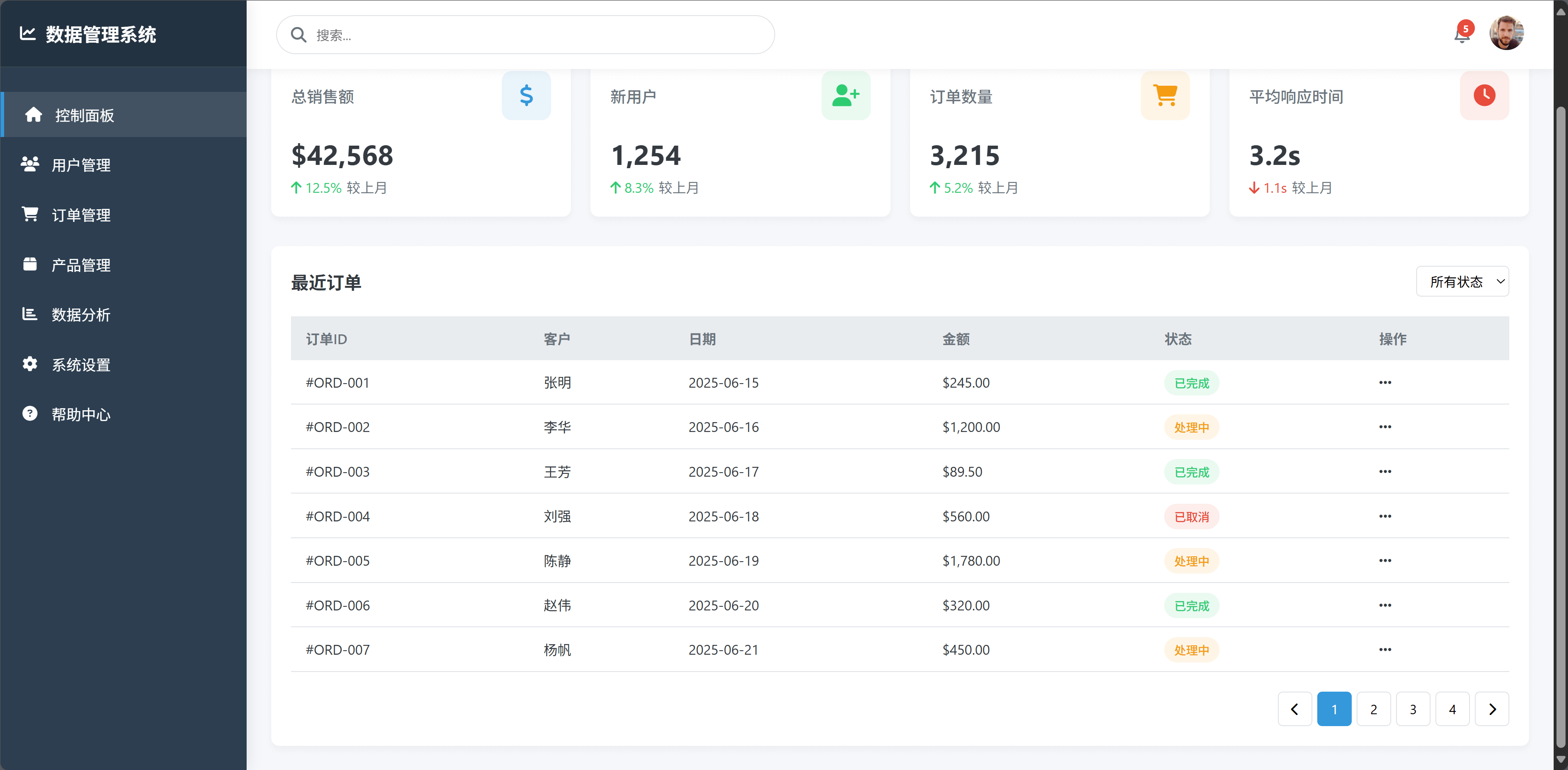 以上是使用 Fitten Code 的 Agent 功能实现的后台管理网站页面的效果。只需要输入简单的命令就能轻松搭建复杂且自由的 HTML 结构!