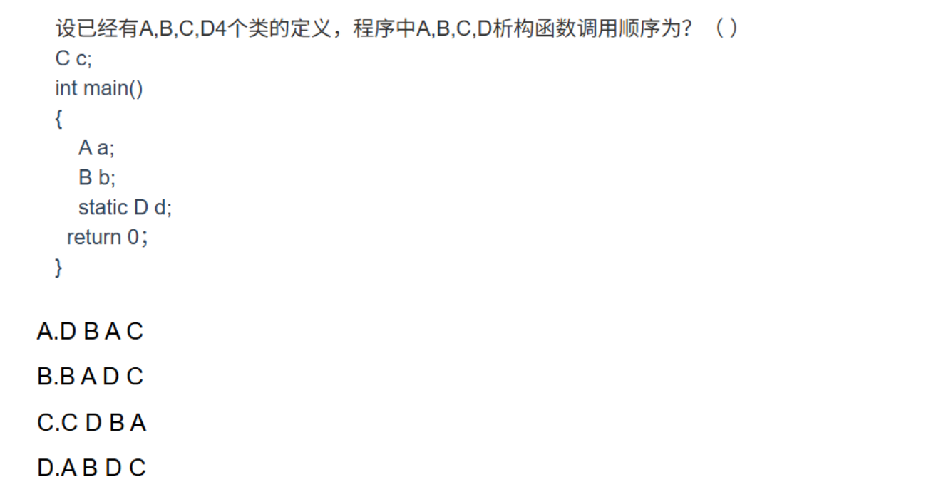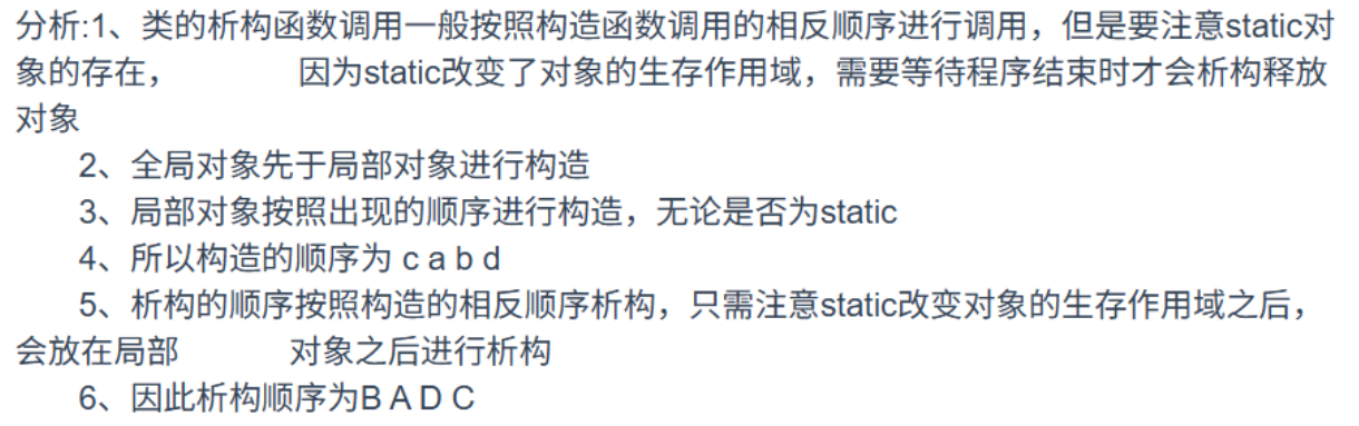 - 一个局部域的多个对象,C++规定后定义的先析构。