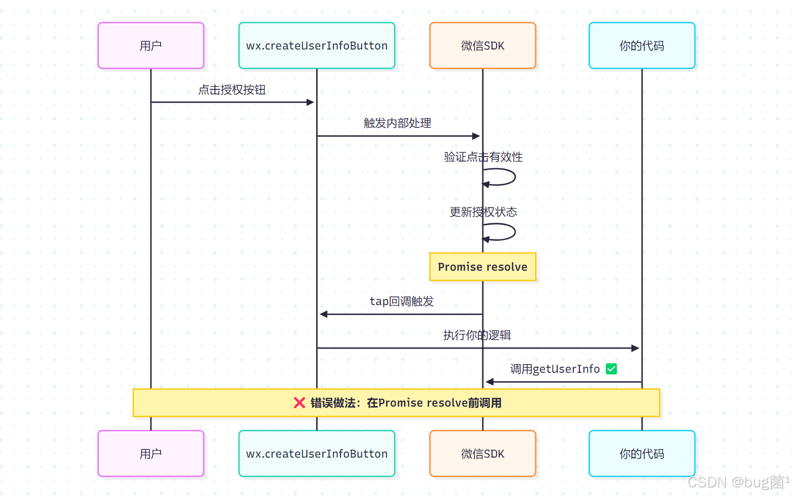 - 错误本质:微信要求用户点击授权按钮后,必须等待微信SDK内部的Promise resolve完成后,才能调用