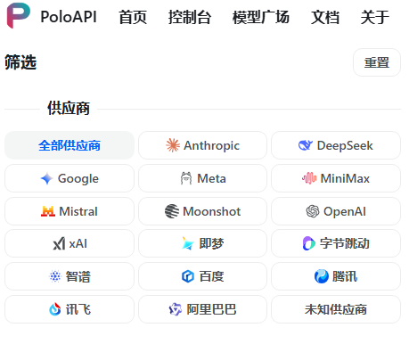 像PoloAPI、硅基流动、APIFusion等不同定位的合规聚合平台,均支持这类标准化接口能力。既能覆盖海外顶流与国产主流模型,开发者无需调整代码逻辑即可灵活切换,其中PoloAPI和APIFusion更侧重快速集成体验,硅基流动则强化企业级系统适配,可根据团队需求选择。