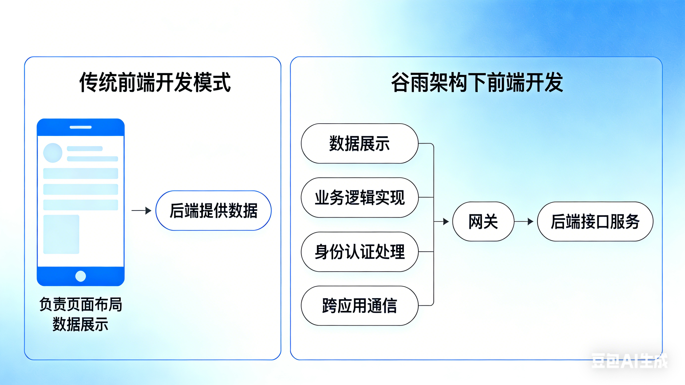 在谷雨的实践中,前端团队与产品经理形成了更紧密的协作关系 —— 前端深入理解业务需求,直接将需求转化为交互逻辑;后端团队则摆脱前端细节的束缚,专注于平台底层能力的长期建设。