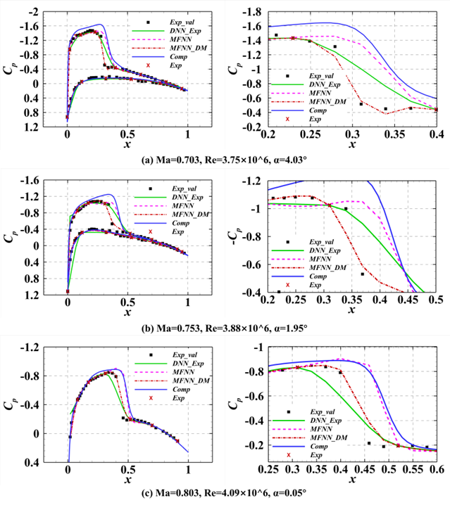 通过NACA0012翼型和ONERA M6机翼跨声速压力分布重构,验证了MFNN_DM模型的泛化能力,建模精度提升超30%。