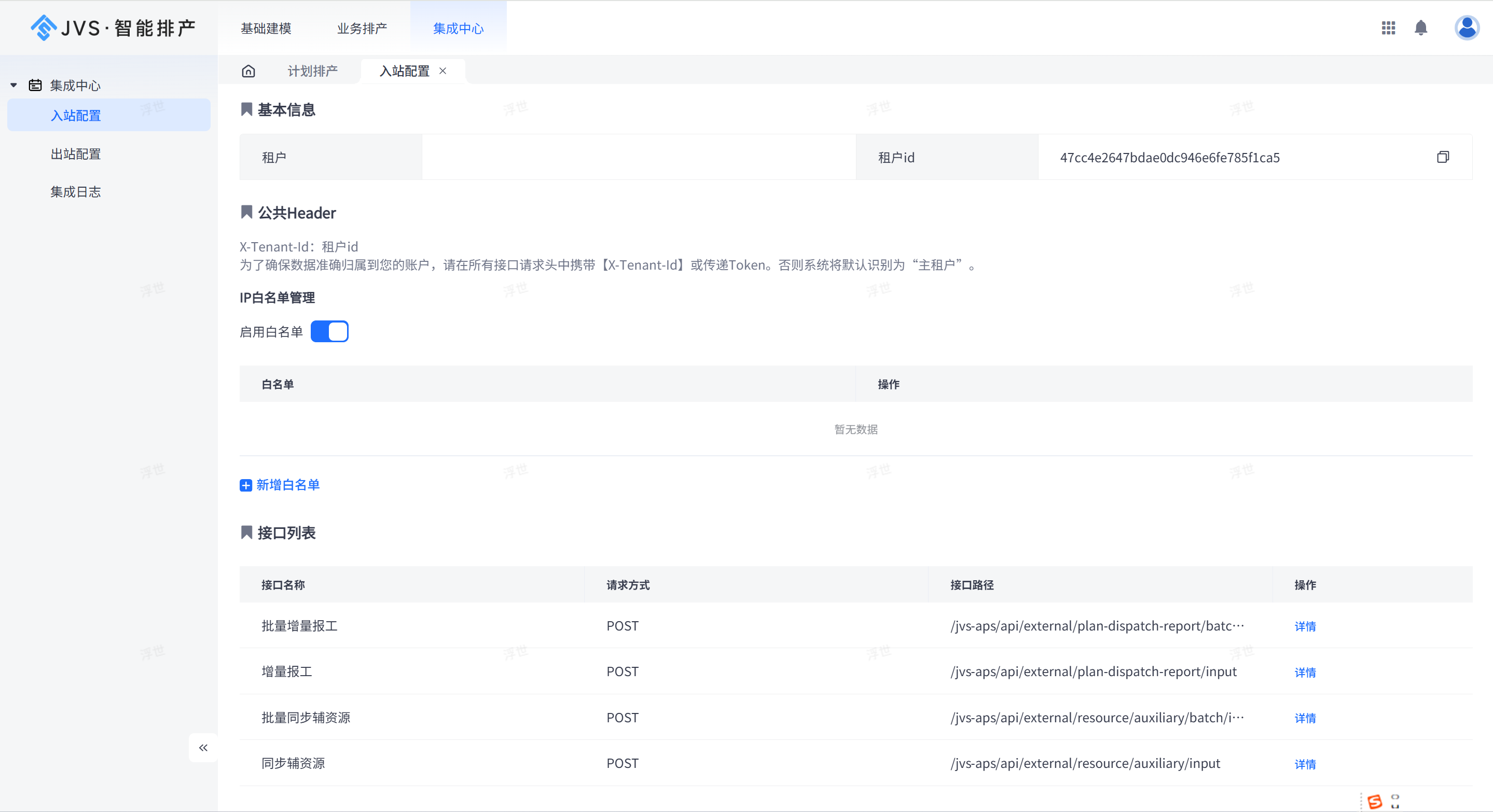 其中所有的接口配置均为租户级,也就是同一套APS 可以不同租户进行分别隔离使用。并且提供了详细的API查看的详情: