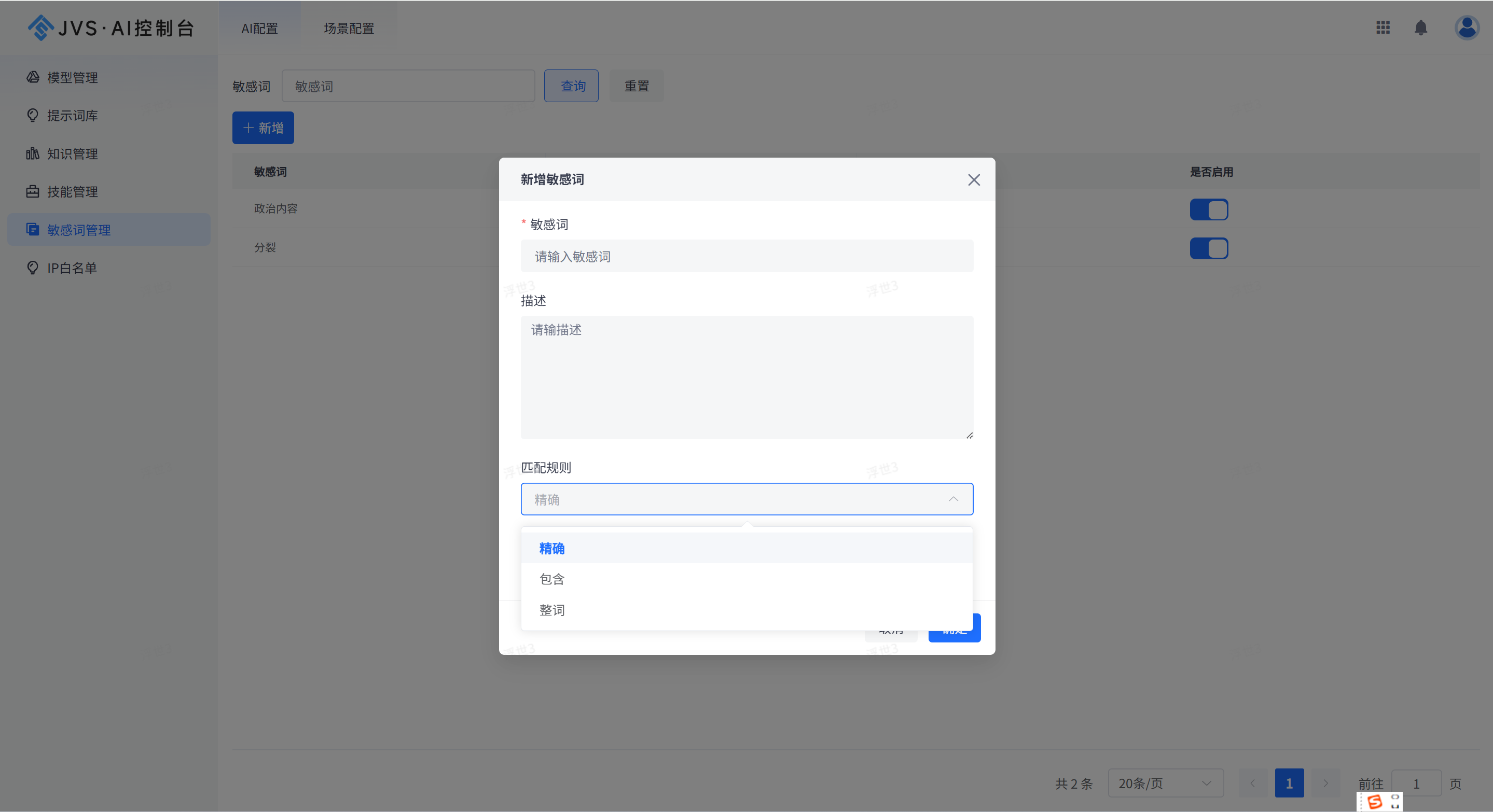 5、优化调整敏感词的设置功能,支持多种方式匹配敏感词。