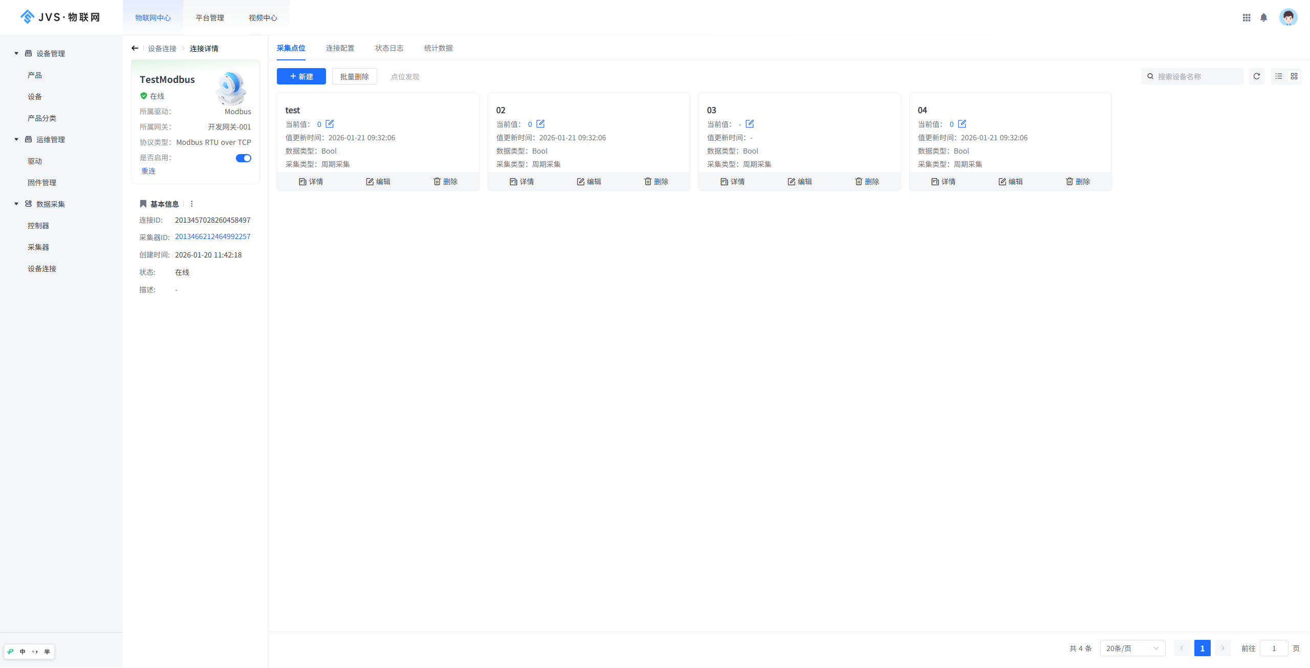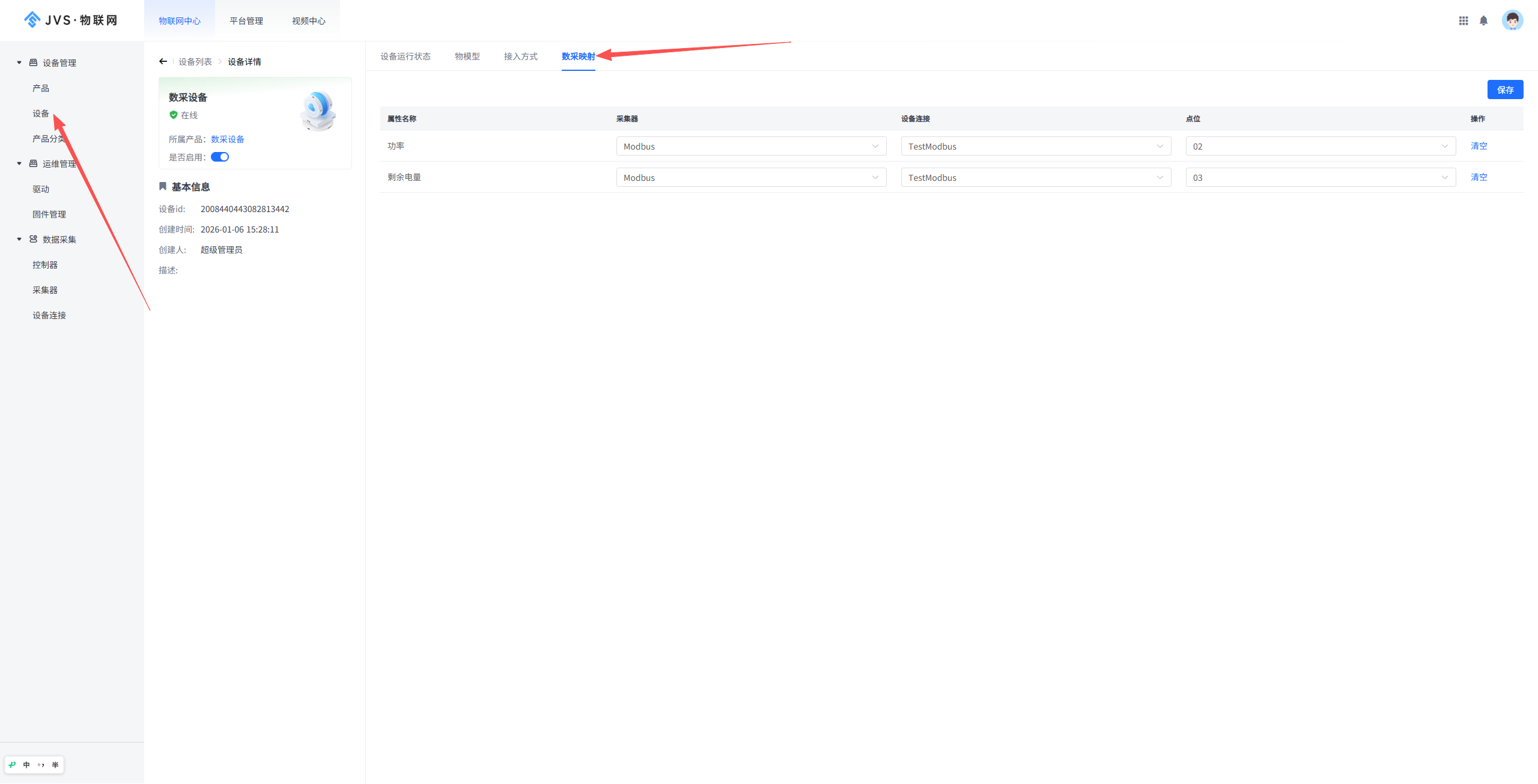 3、当接入方式为“数据采集”时,配置设备数据映射现已支持按采集器、设备连接及点位进行逐级选择。