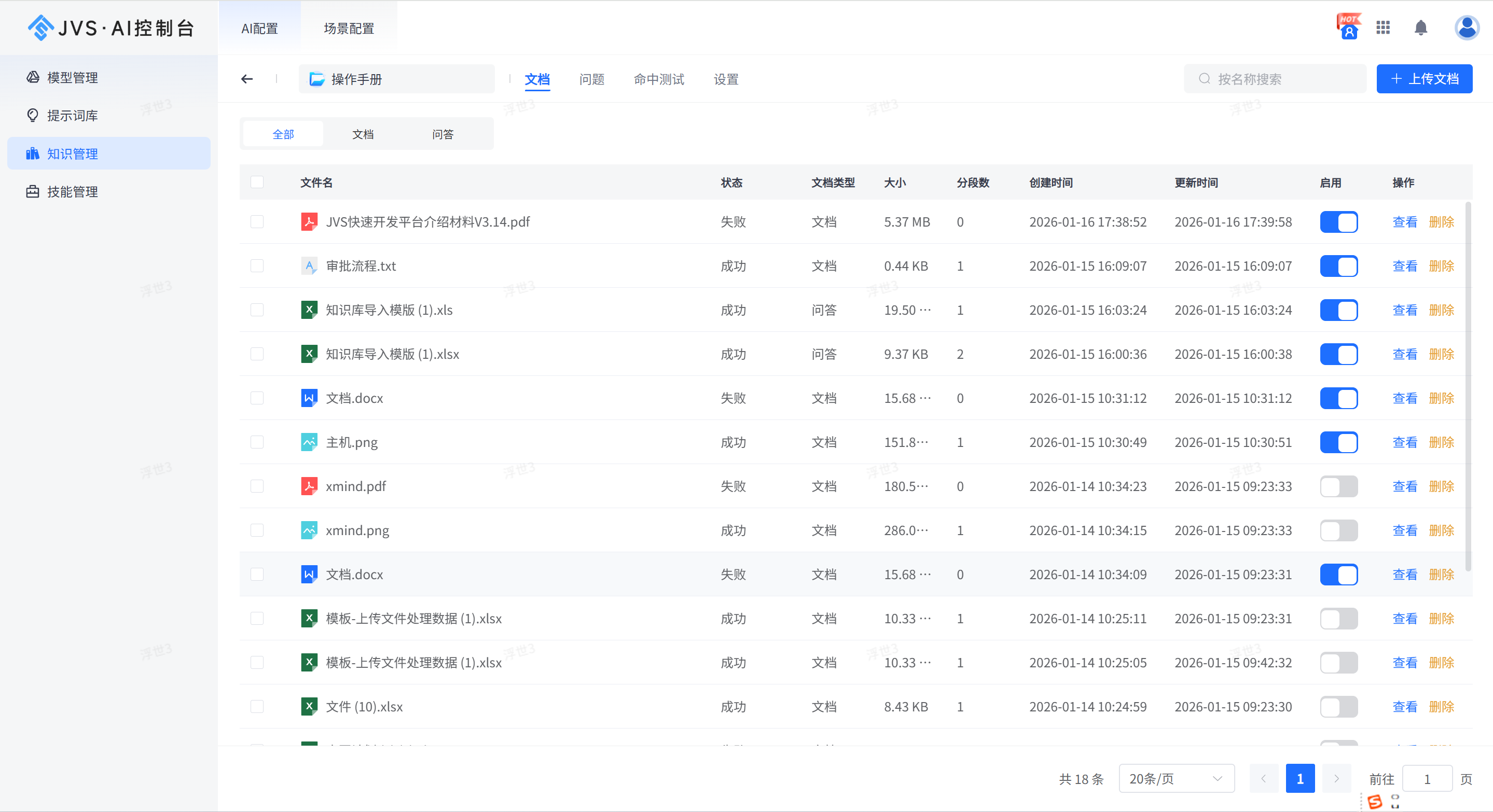1、重构知识管理的功能,通用文库文档的导入与相关管理操作,如下图所示:
