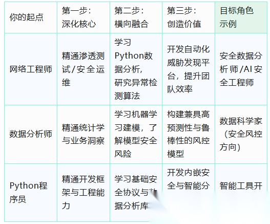 未来的高薪机遇属于那些能站在“AI赋能安全”与“安全守护智能”两大趋势交汇点上的人才。这要求我们打破传统的技能孤岛,建立一个以python为连接器、以解决复杂系统性问题为目标的动态知识网络。