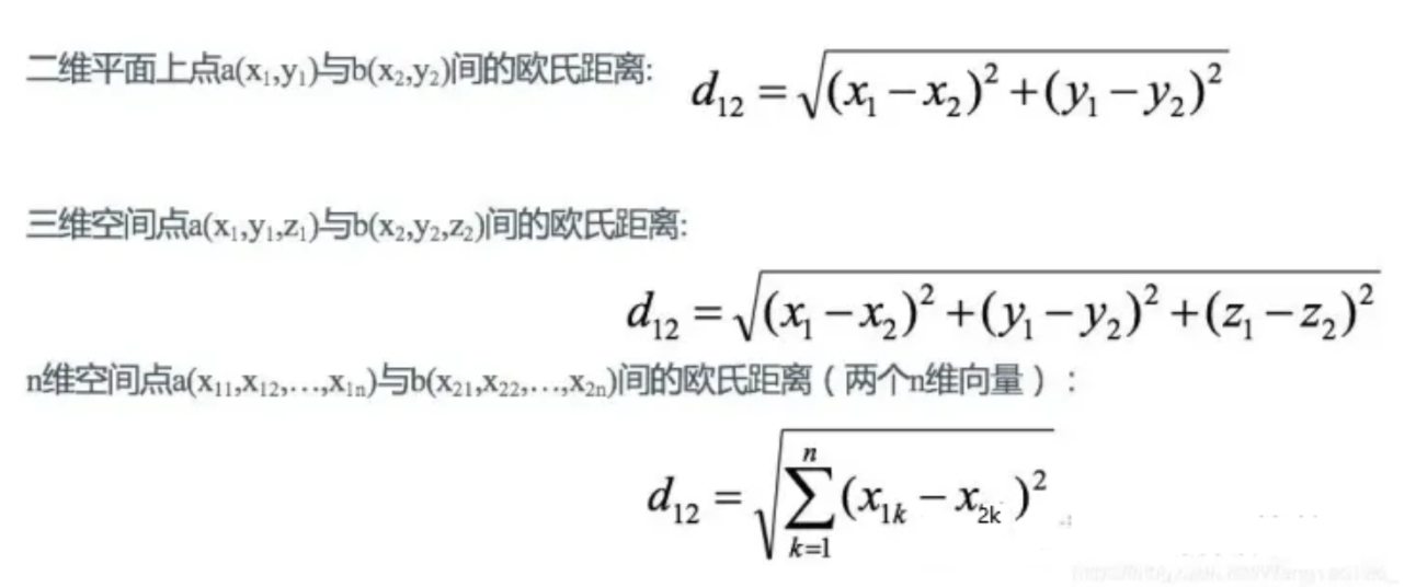 图为欧式距离计算公式在二维、三维、n维上的计算公式