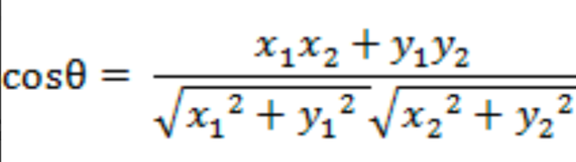假设在二维空间中存在两个向量A(x1,y1)B(x2,y2),AB间的夹角余弦公式为: