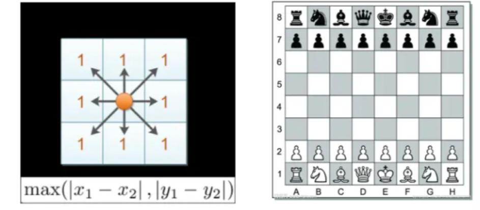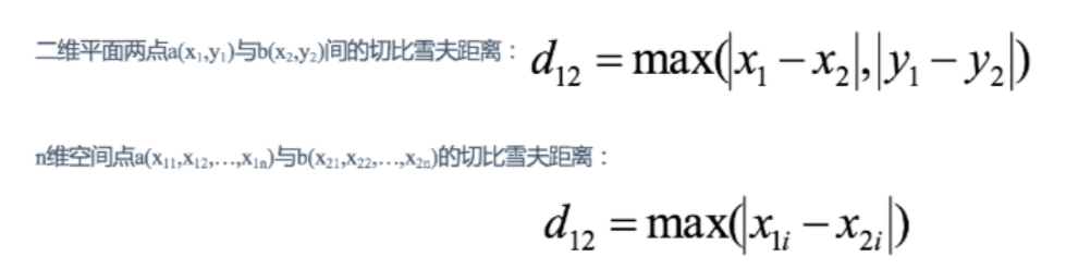 缺点:切比雪夫距离通常用于非常特定的用例,这使得它很难像欧氏距离那样作通用的距离度量