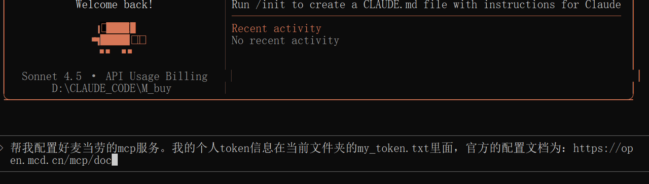 2.再把你在麦当劳 MCP 平台申请到的 Token 提供给它