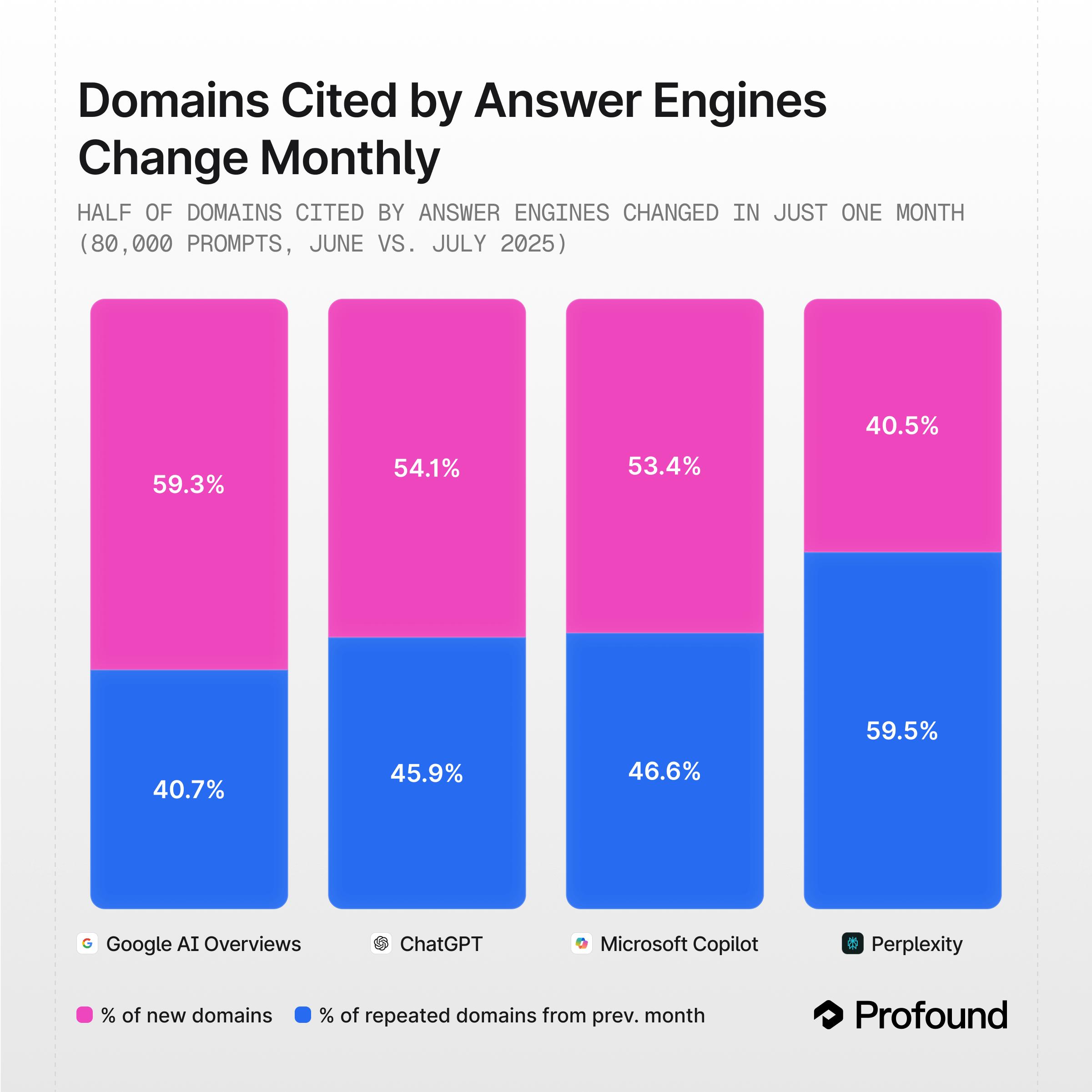这是GEO面临的最大技术挑战。用户抱怨GEO数据波动极大。今天在ChatGPT里排名第一,明天可能就消失了。Profound的数据证实了这一点(40-60%的引用漂移)。这种剧烈的波动性让营销人员很难向高管汇报KPI,导致工具的续费率(Retention)面临挑战——客户可能因为数据太不稳定而觉得工具“坏了”。