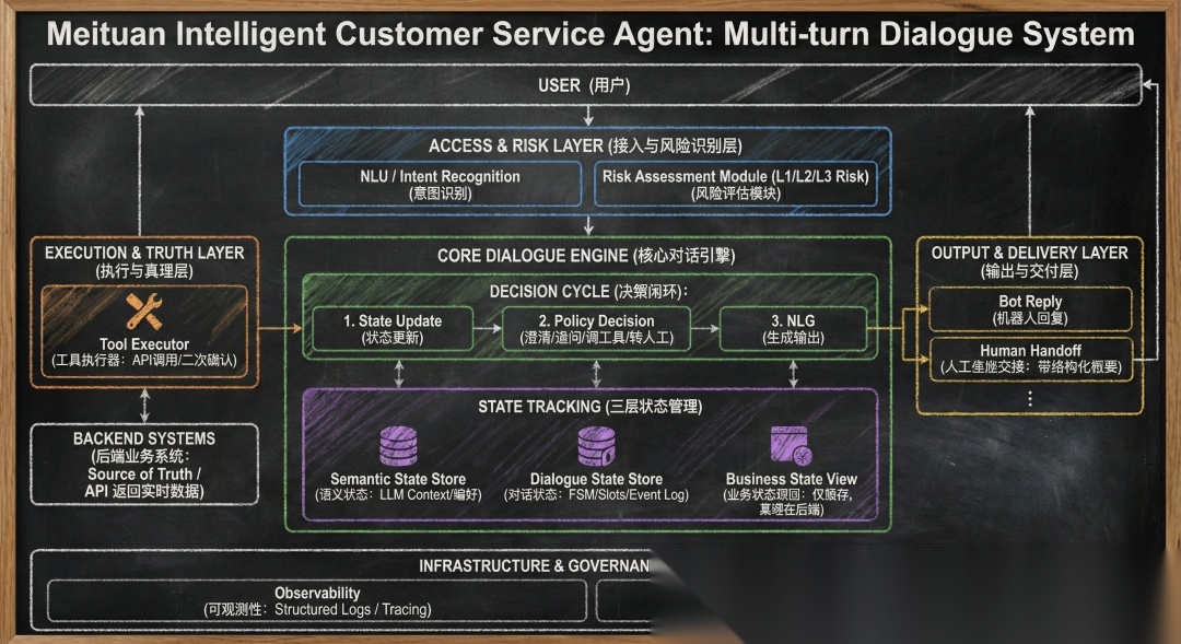 本文阐述了客服Agent系统设计的核心理念与方法,强调其本质是自动化业务执行系统而非聊天机器人。文章详细介绍了风险分层架构设计、三层状态管理模型、模糊意图处理策略及工程化交付标准。通过多轮交互将用户不确定输入收敛为确定业务指令,确保系统安全可靠,为企业提供可回滚、可审计的智能客服解决方案。