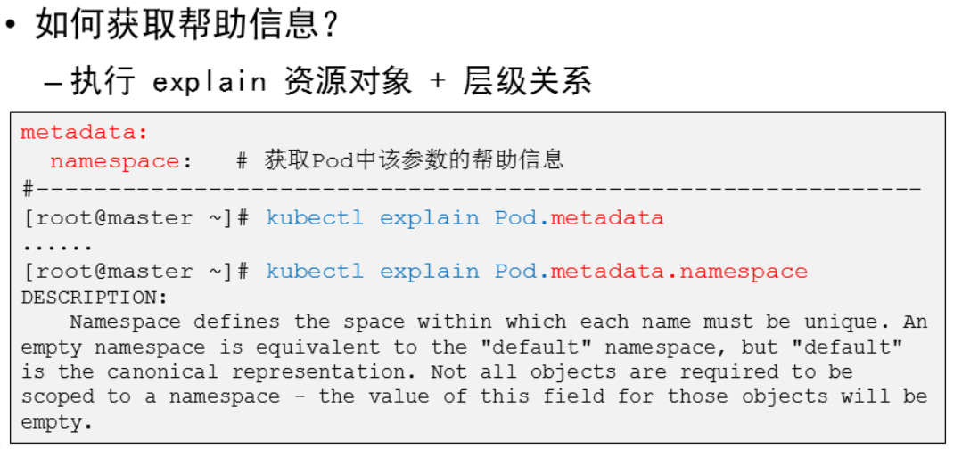 [root@master ~]# kubectl explain Pod.metadata.namespace