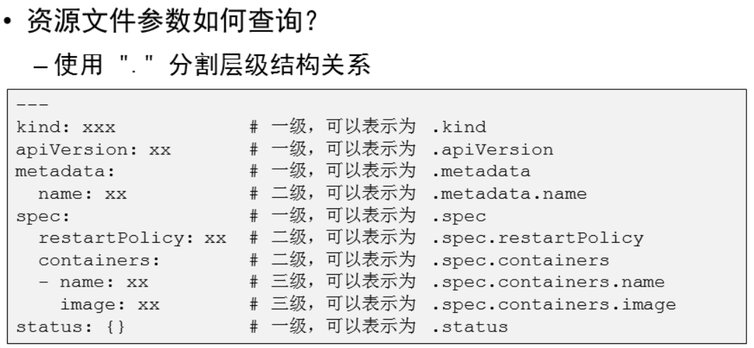 # 获取资源对象模板[root@master ~]# kubectl create namespace work --dry-run=client -o yaml# 查询帮助信息[root@master ~]# kubectl explain Pod.metadata[root@master ~]# kubectl explain Pod.metadata.namespace[root@maste
