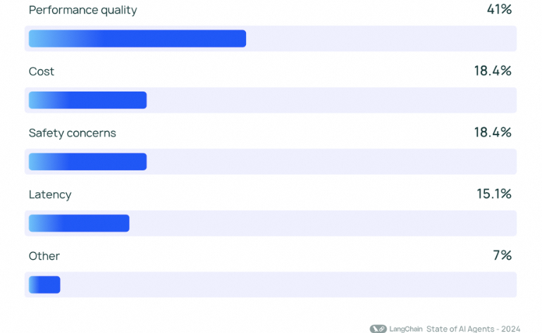 从 LangChain 的调研来看,41% 的受访者认为性能质量是构建可靠智能体系统的最大限制。性能质量表现不佳常因模型不够好或传递了错误(或不完整)的上下文,后者更加常见,包括不完整或简短的系统消息、模糊的用户输入、无法访问正确的工具、工具描述不佳、未传递正确的上下文、工具响应格式不佳等。