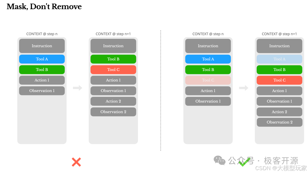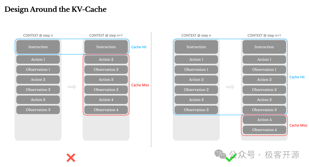确保上下文只追加:避免修改历史操作或观察结果。确保序列化过程是确定性的,因为许多编程语言在序列化 JSON 时不保证键顺序稳定。