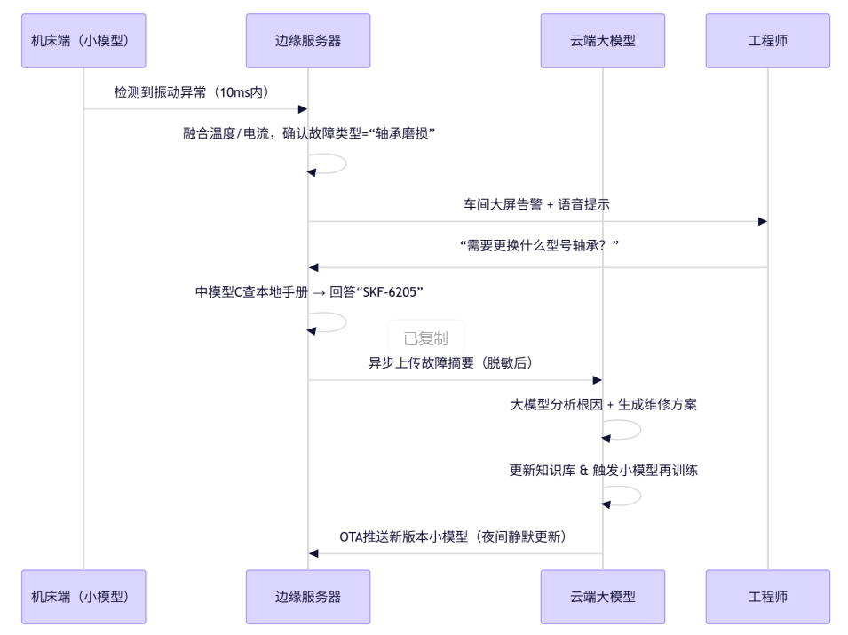 触发小模型再训练流程(如用新数据微调边缘的故障分类器);
