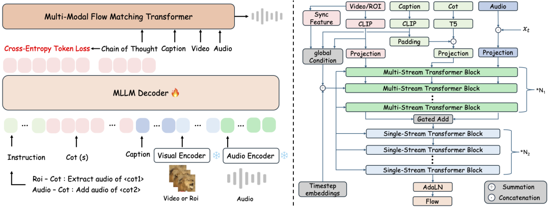 - 拟音生成(Foley Generation):从视频中生成与语义和时间线都对齐的基础音景。