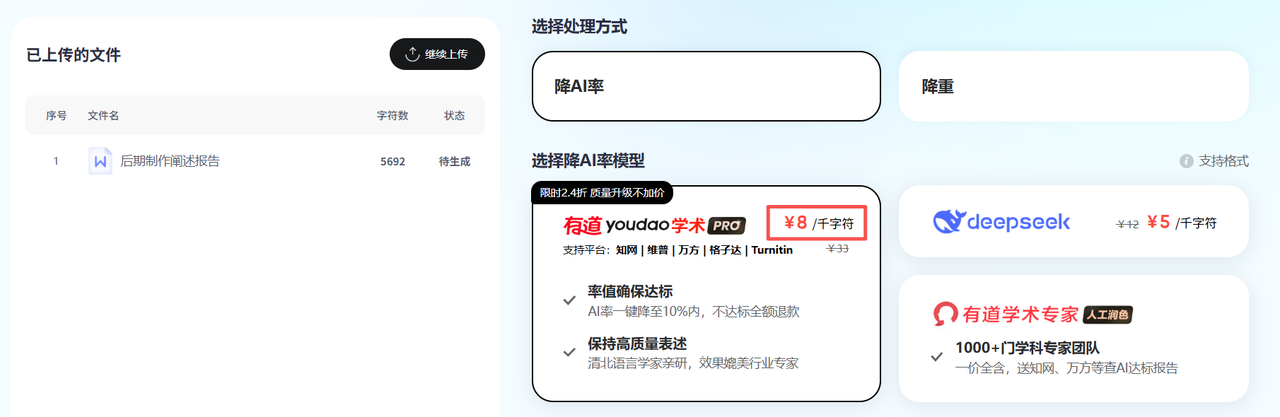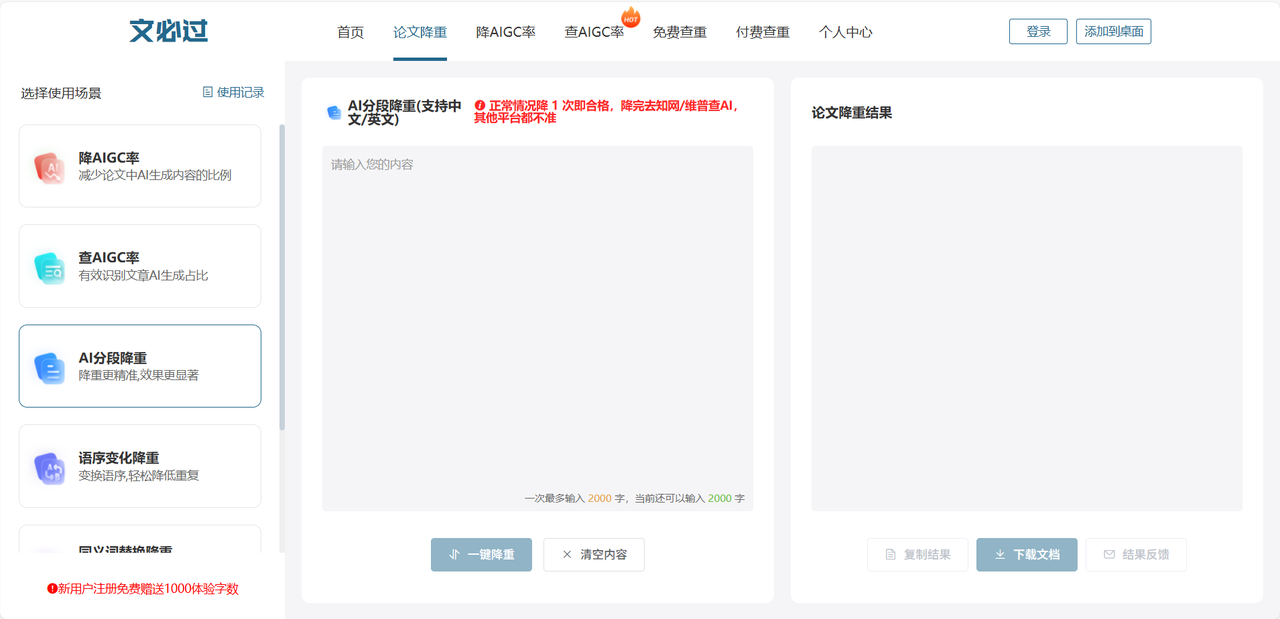 它不是完全aigc免费降重,但3元/千字的价格也就是瓶饮料钱,为了省钱去试错那些免费降低ai率的偏方,真不如用它一次通关。