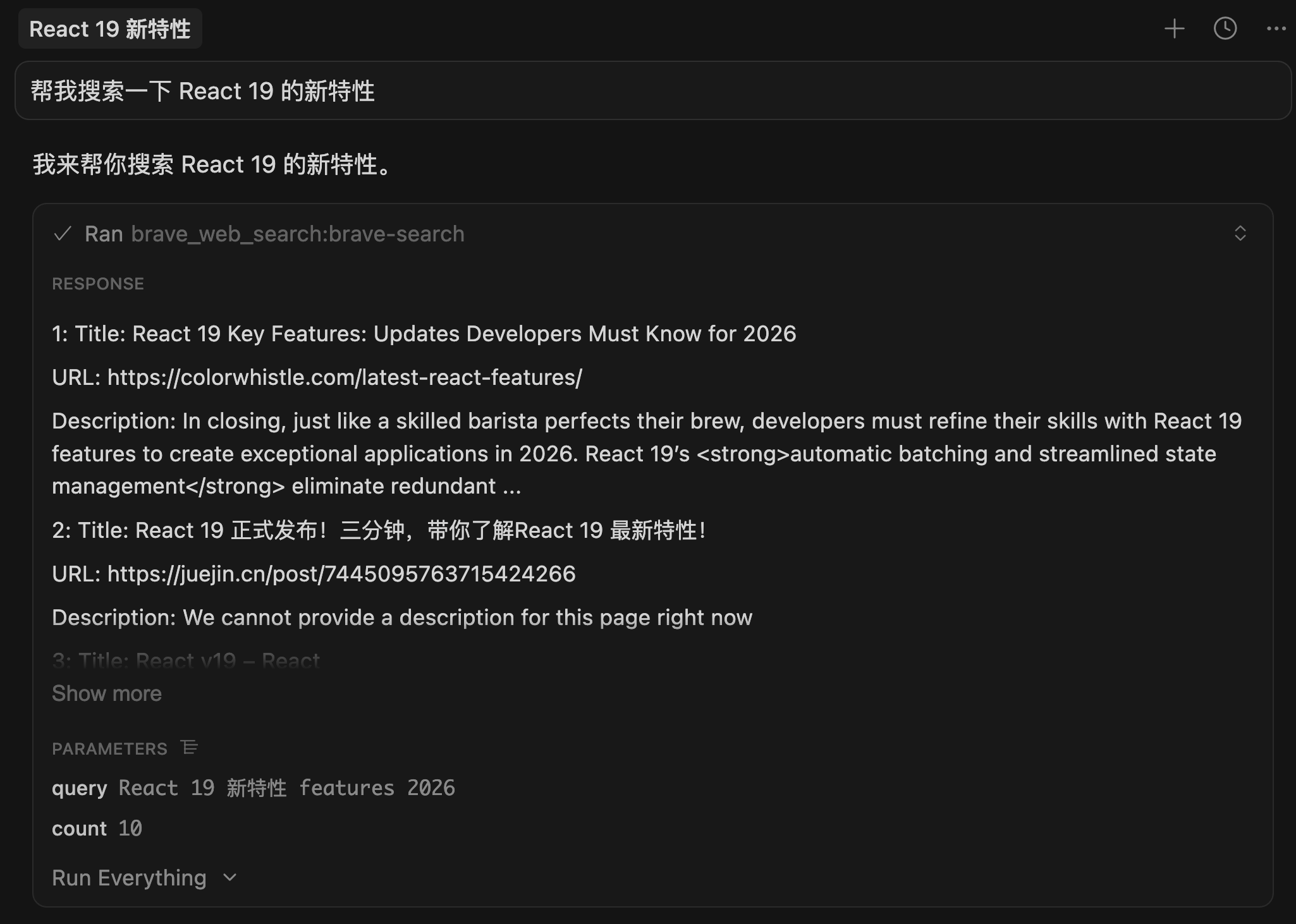 有了 Brave Search MCP,我直接跟 AI 说: