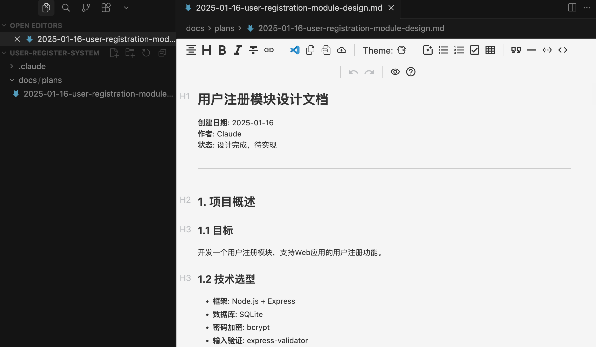 当需求和方案确认无误后,它会自动将详细的设计文档保存到 docs/plans/ 目录。