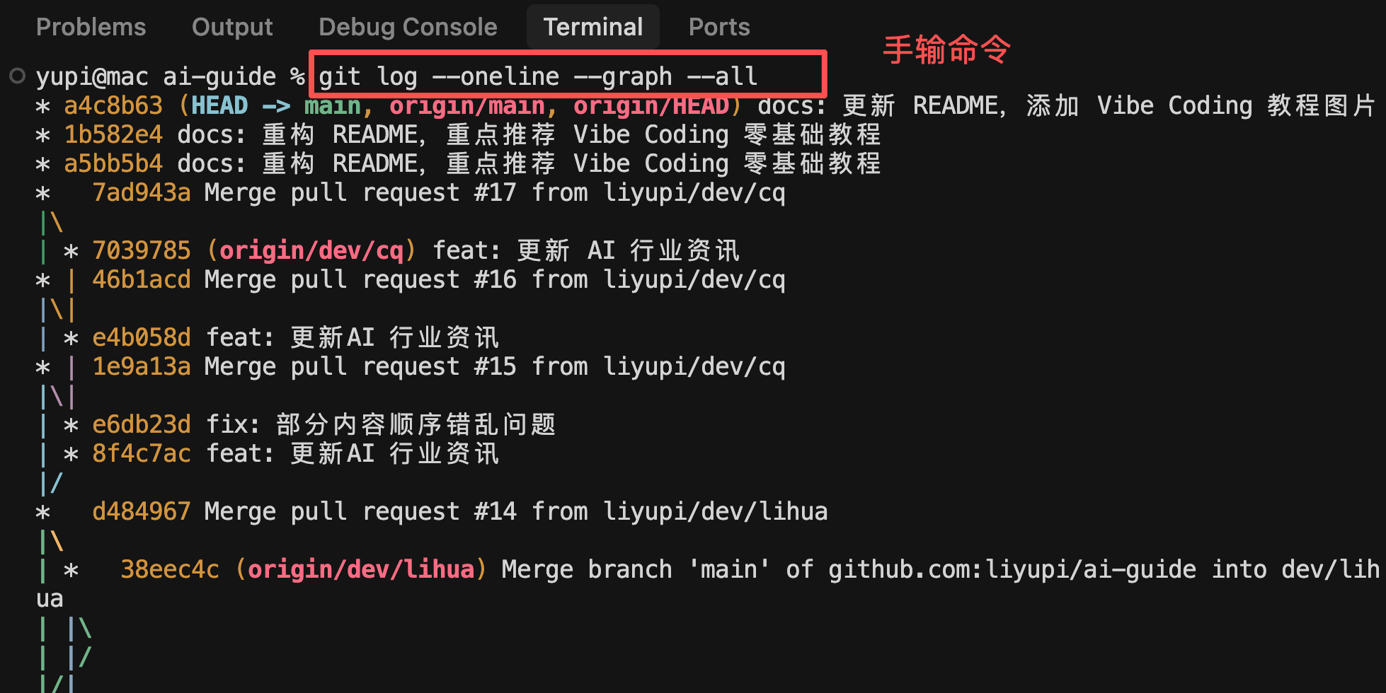 现在主流的 AI 编程工具(Cursor、VS Code 等)都内置了终端,有时我们需要敲命令来执行任务,但是命令记不住怎么办?