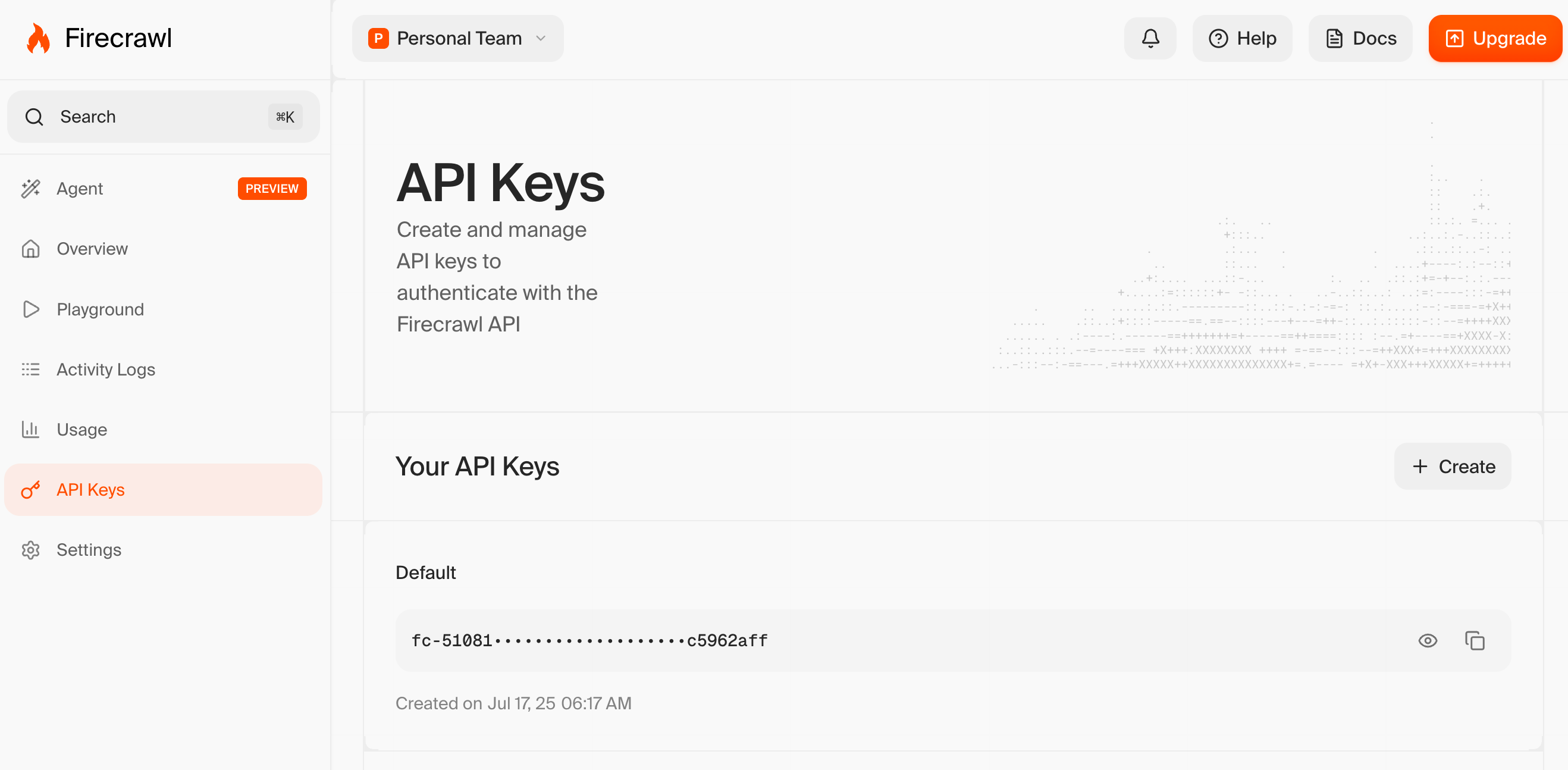 首先你需要在 Firecrawl 官网 注册账号,并创建一个调用服务的 API Key。