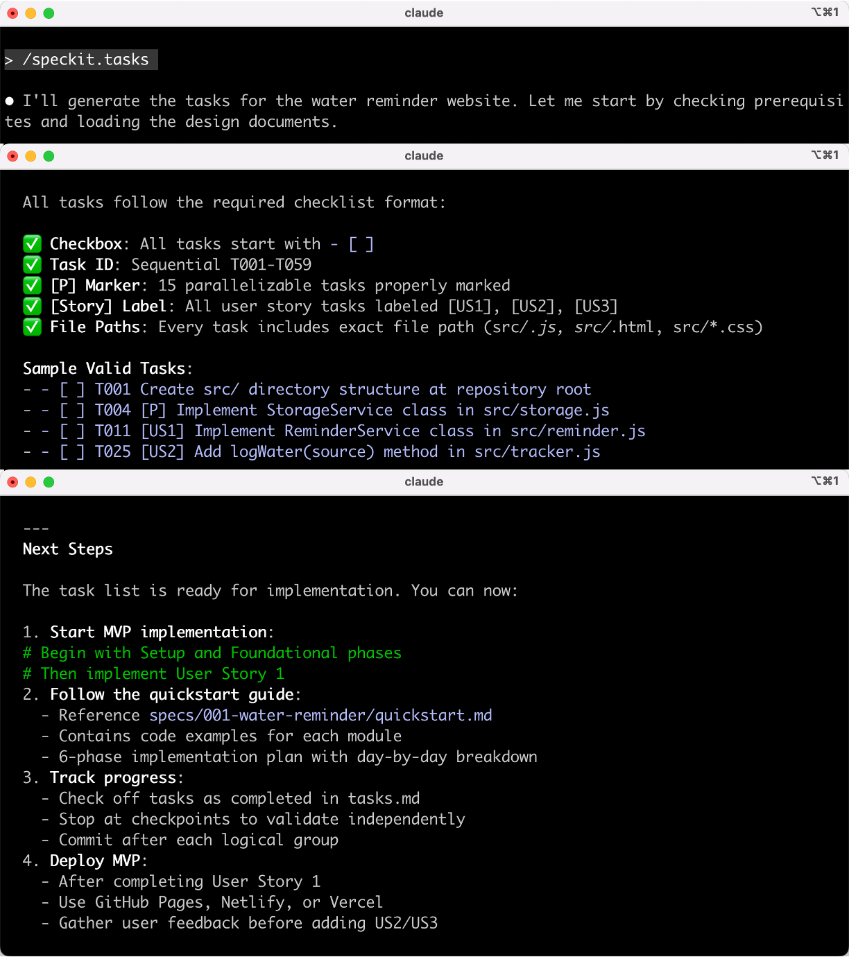 查看 AI 生成的实施计划文档,每个任务都包含: