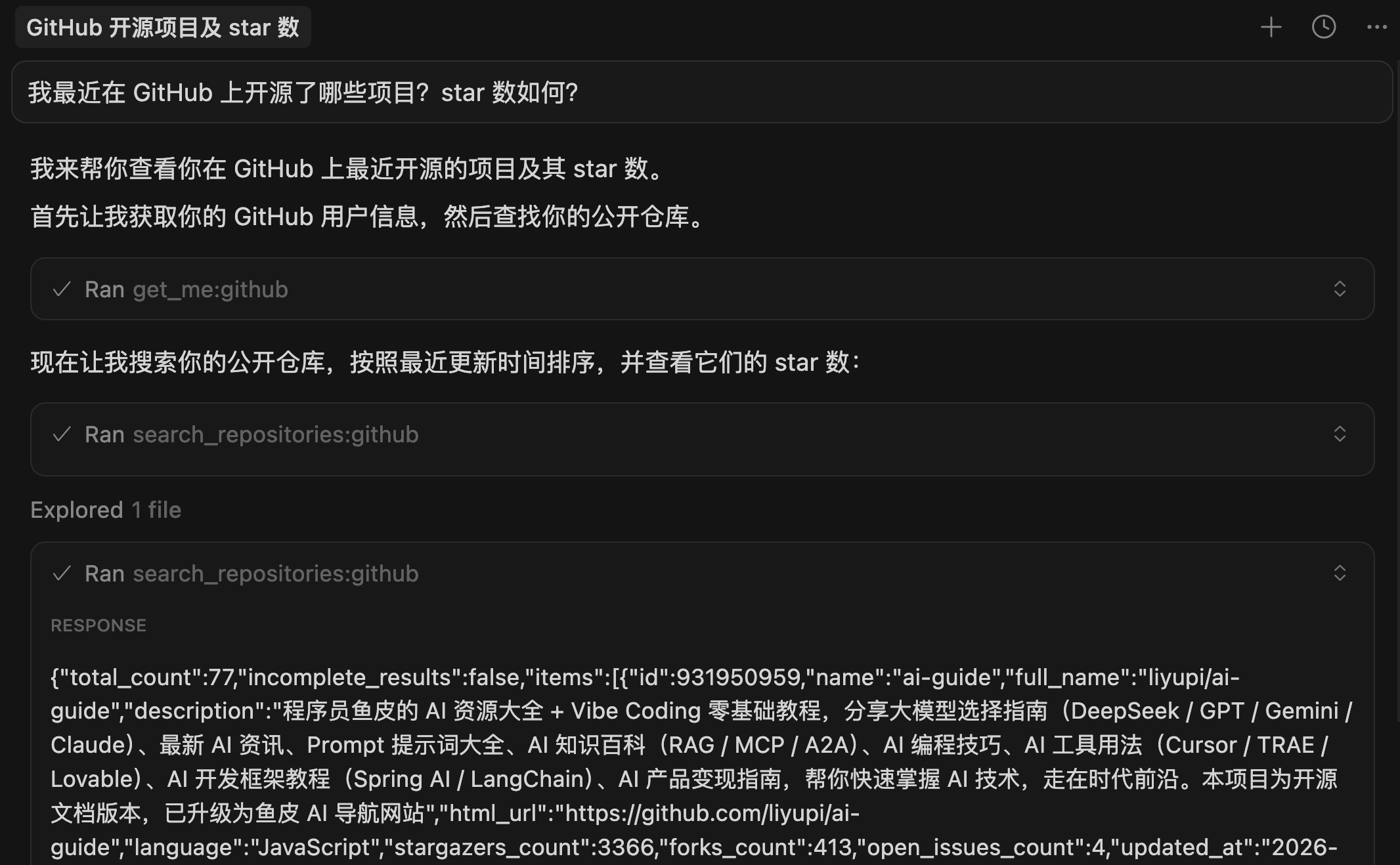 在开发过程中,我经常需要让 AI 帮我搜索最新的技术资料、查找某个库的使用示例、或者了解某个技术问题的解决方案。传统的做法是自己去搜索引擎查,然后把结果复制给 AI,比较麻烦。